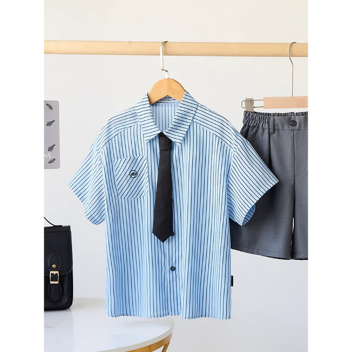 남아용 반팔 셔츠, 여름 신작 스트라이프, 중소형 아동용, 멋진 대학 스타일 셔츠, 상의, 패셔너블하고 다재다능하며 멋집니다.