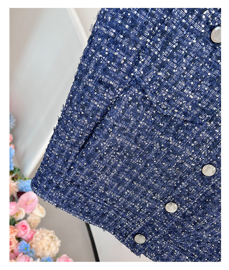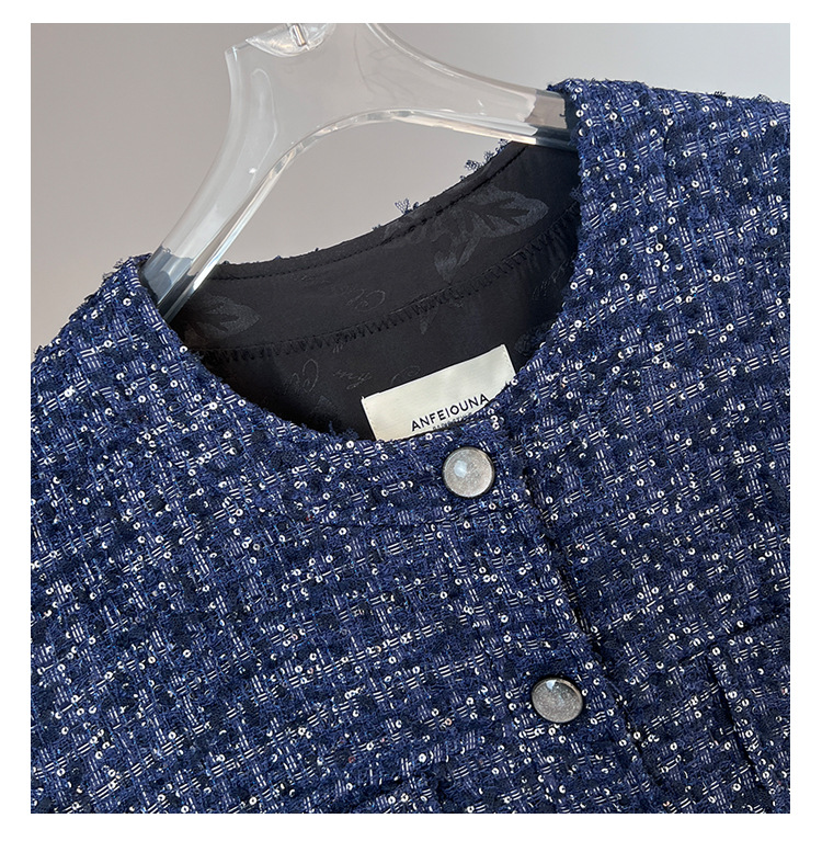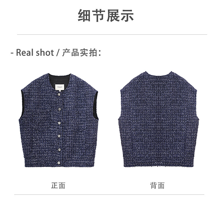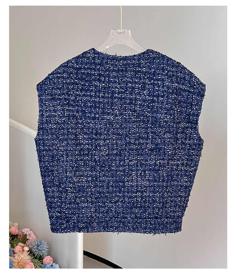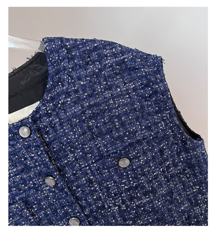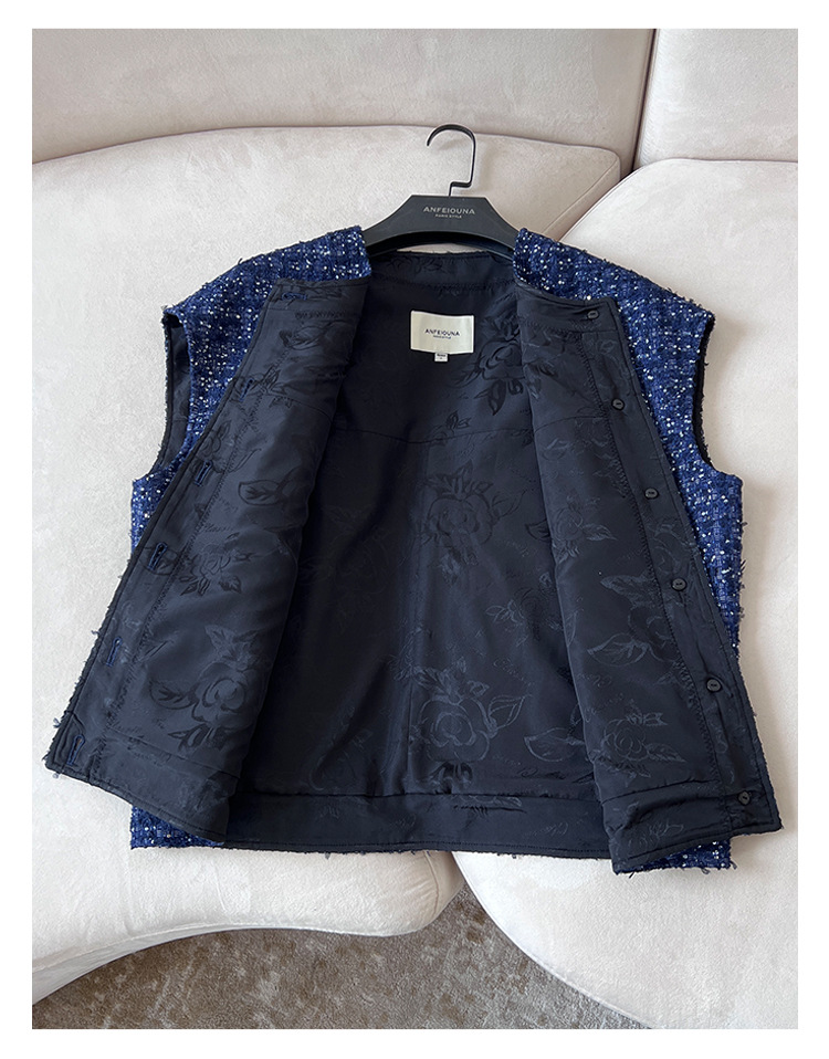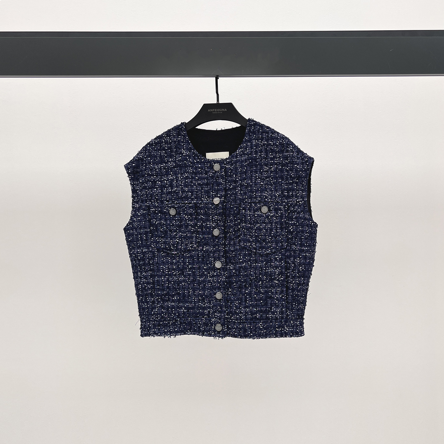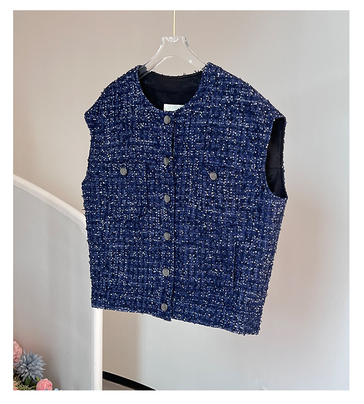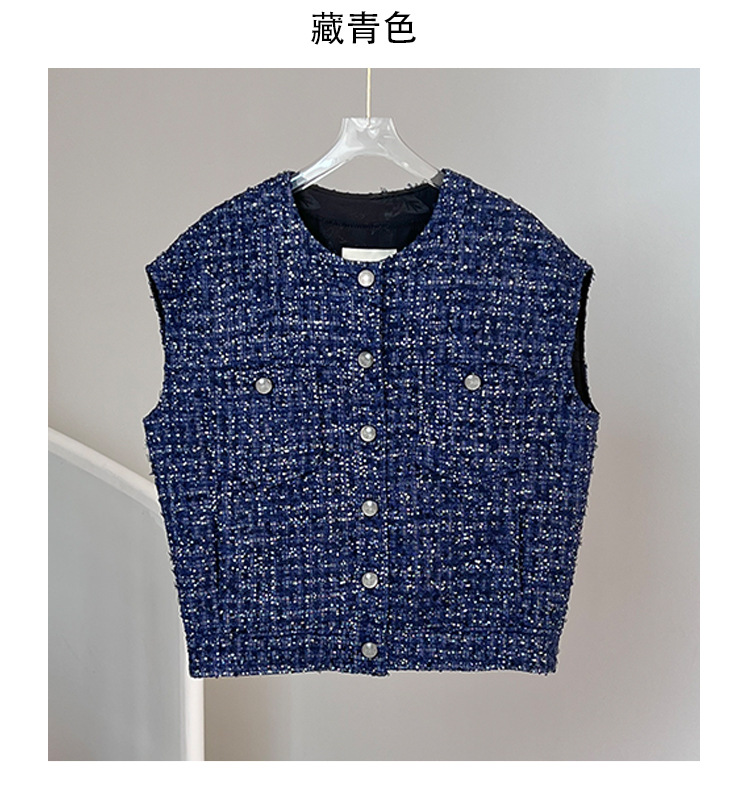 Amfiona 2025 새로운 레트로 작은 향기로운 실버 스팽글 짠 트위드 라운드 넥 느슨한 민소매 여성 조끼스토어 가기