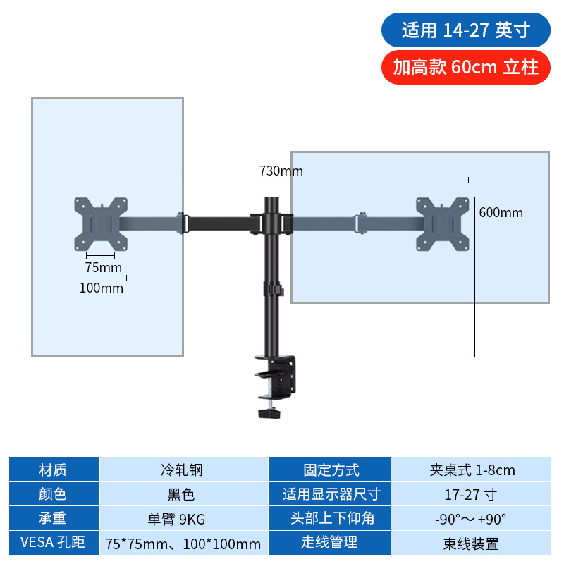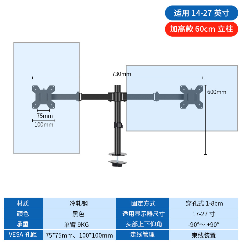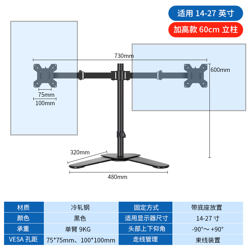 • II 듀얼 스크린 모니터 스탠드 강화 모델 60cm 기둥( 17-27inch ) 베이스 모델 II 핫 세일