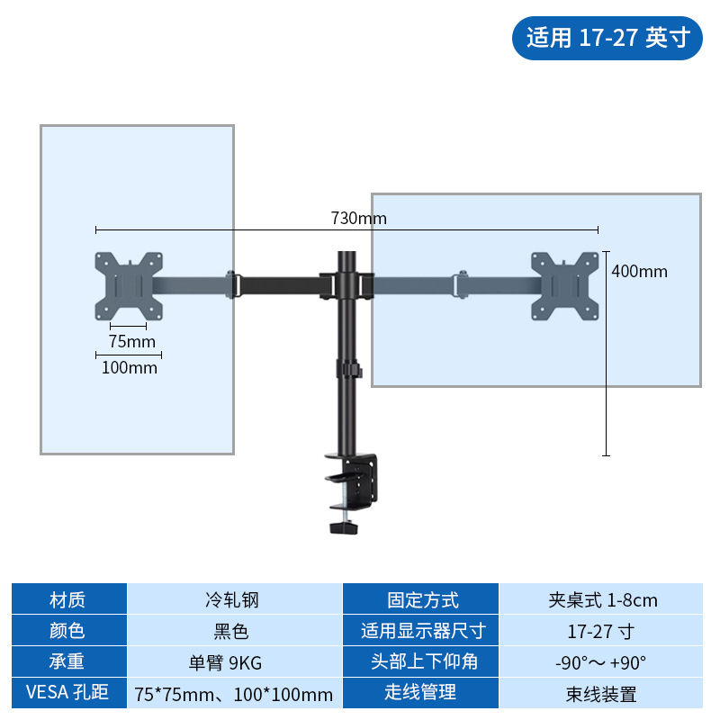 • II 듀얼 스크린 모니터 스탠드(17-27inch) 클립온 테이블 모델 II 인기 판매