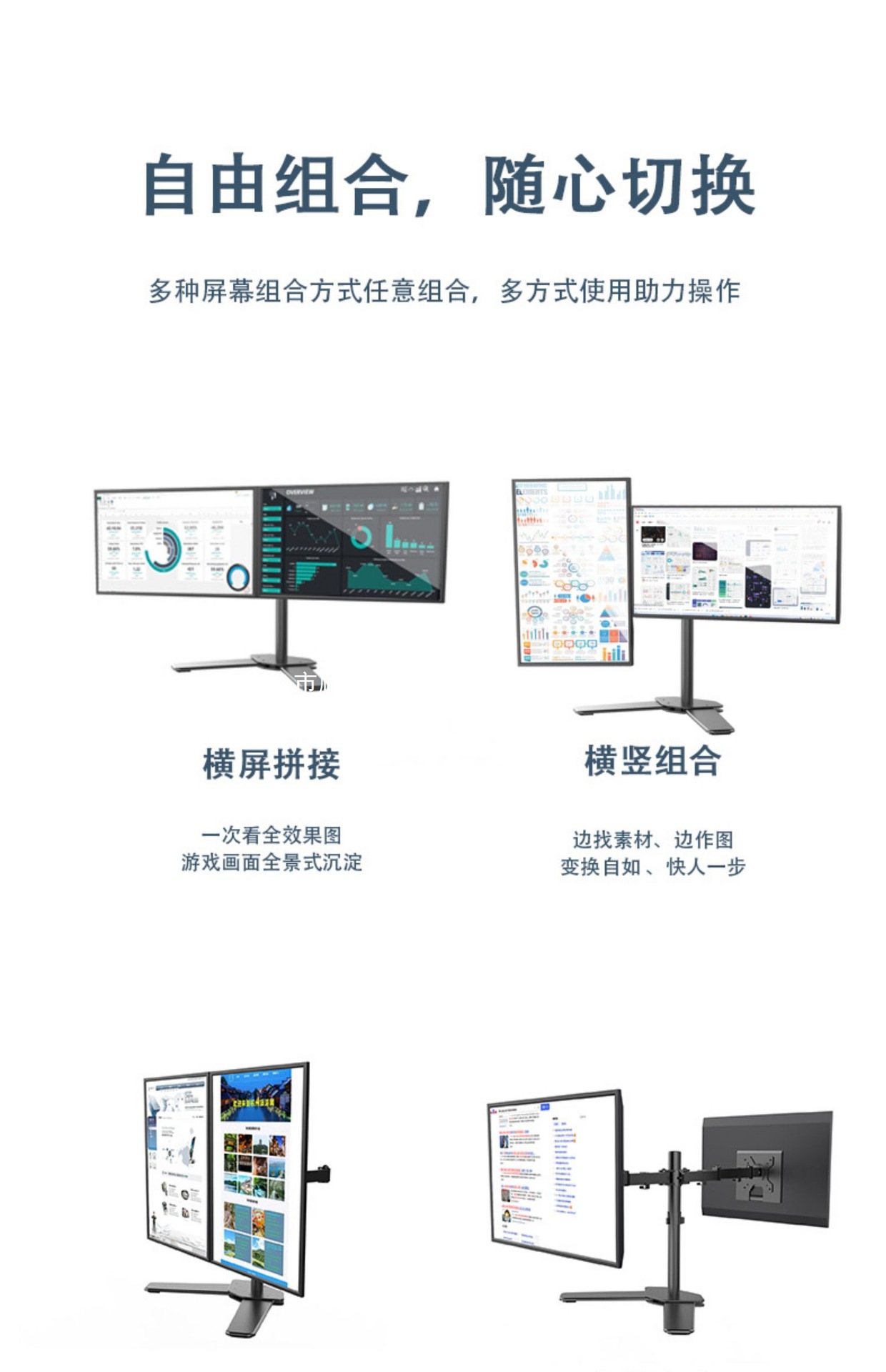 듀얼 스크린 모니터 스탠드 왼쪽 및 오른쪽 위쪽 및 아래쪽 컴퓨터 멀티 스크린 노트북 높이 조절 스탠드 펀치 없음 1-2 베이스