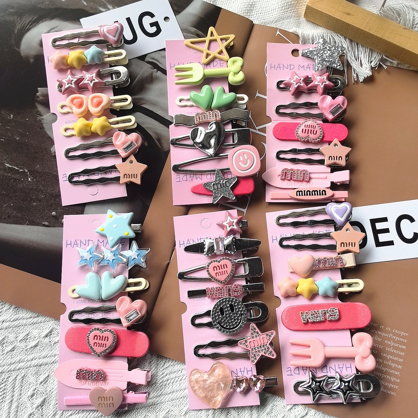 여성용 캔디 컬러 오각별 머리핀 50개, 귀여운 사이드 클립, 도파민 클립, 만화 앞머리 클립, 머리핀, 헤어 액세서리스토어 가기