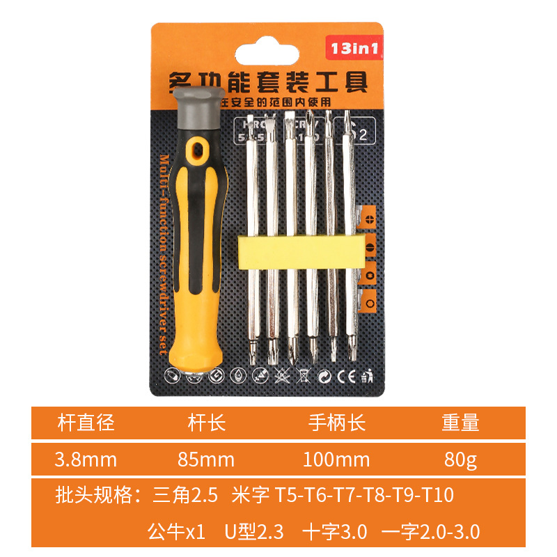• 13-in-1 드라이버/줄무늬 핸들 카드 포장
