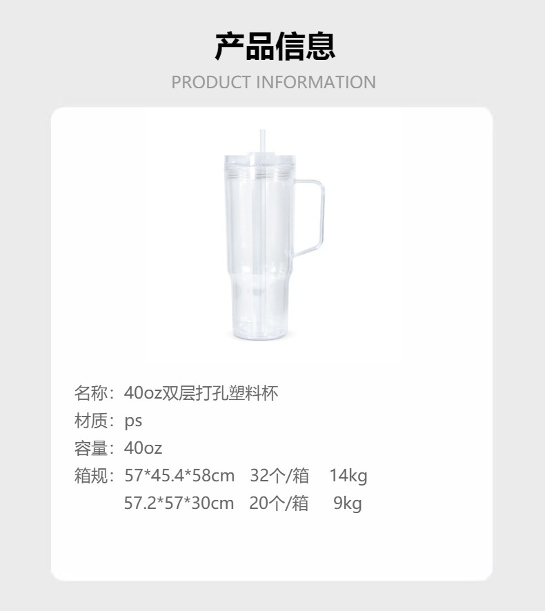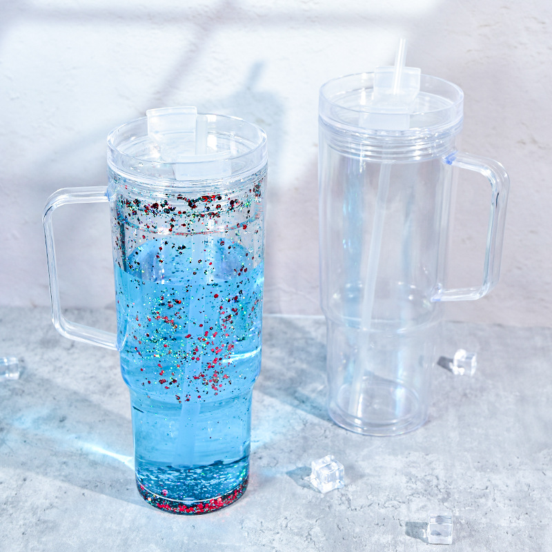 뚜껑이 있는 크로스보더 이중층 플라스틱 컵 40온스 물컵 대용량 밀짚 컵 DIY용 마개 포함