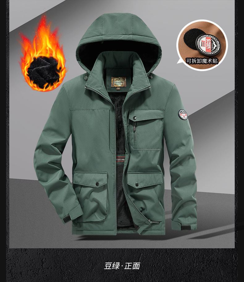 겨울 두꺼운 벨벳과 탈착식 고품질 야외 스포츠 및 레저 재킷, 따뜻하고 방풍 재킷