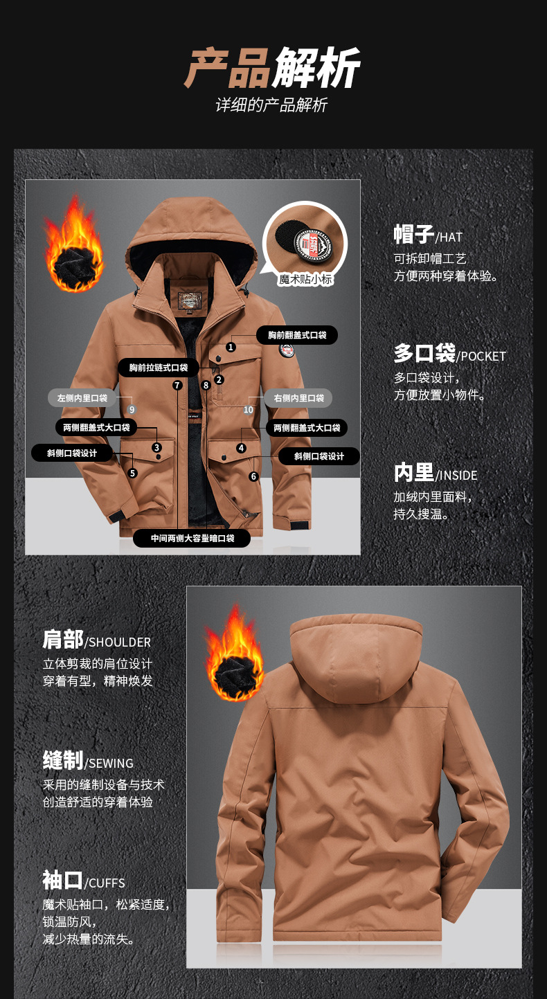 겨울 두꺼운 벨벳과 탈착식 고품질 야외 스포츠 및 레저 재킷, 따뜻하고 방풍 재킷스토어 가기