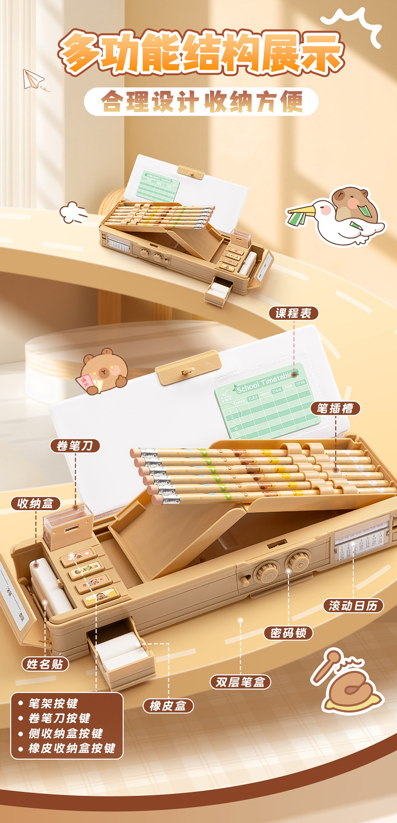Kaba Bear 코드 잠금 문구 필통 고급스러운 2025 신입생 및 어린이 특별 대용량 필통