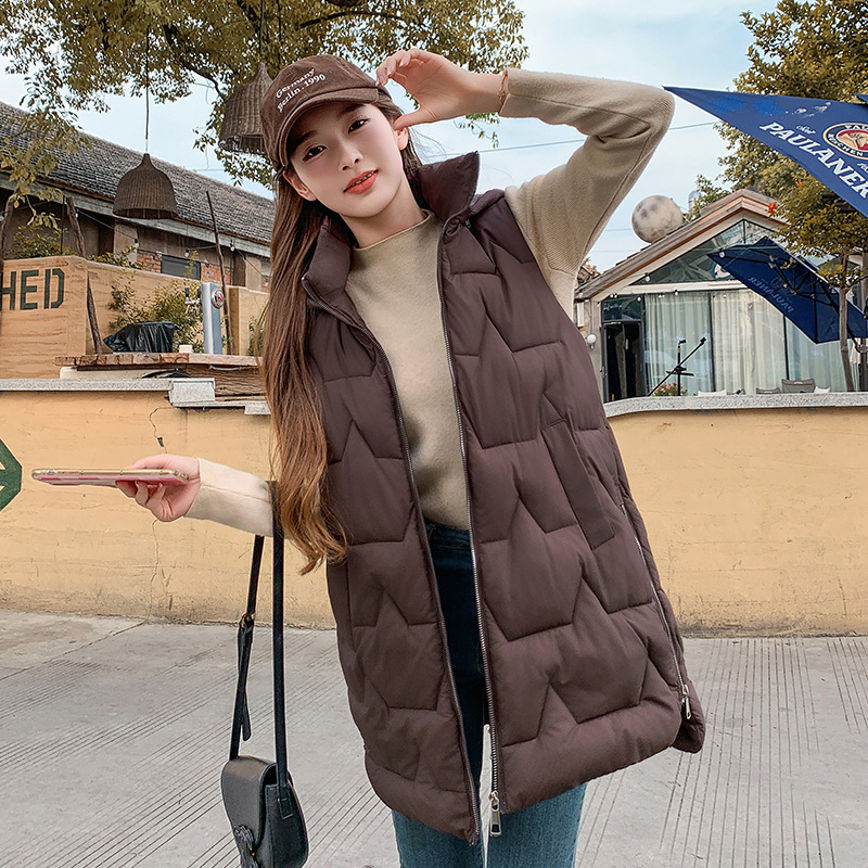 여성을위한 중간 길이 따뜻한 조끼 겨울 새로운 패션 두꺼운 후드 조끼 탑 재킷 유행스토어 가기