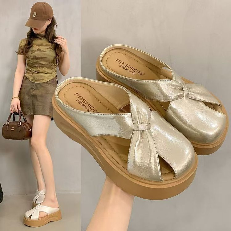 여성용 두꺼운 밑창 발가락 반슬리퍼 2025 여름 신작 스커트와 매치하기 쉬운 프렌치 소프트 밑창 비치 샌들스토어 가기