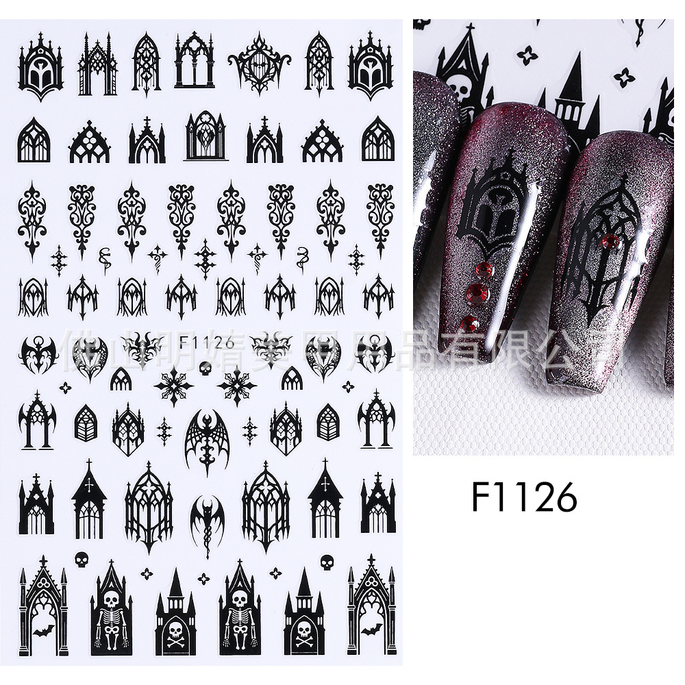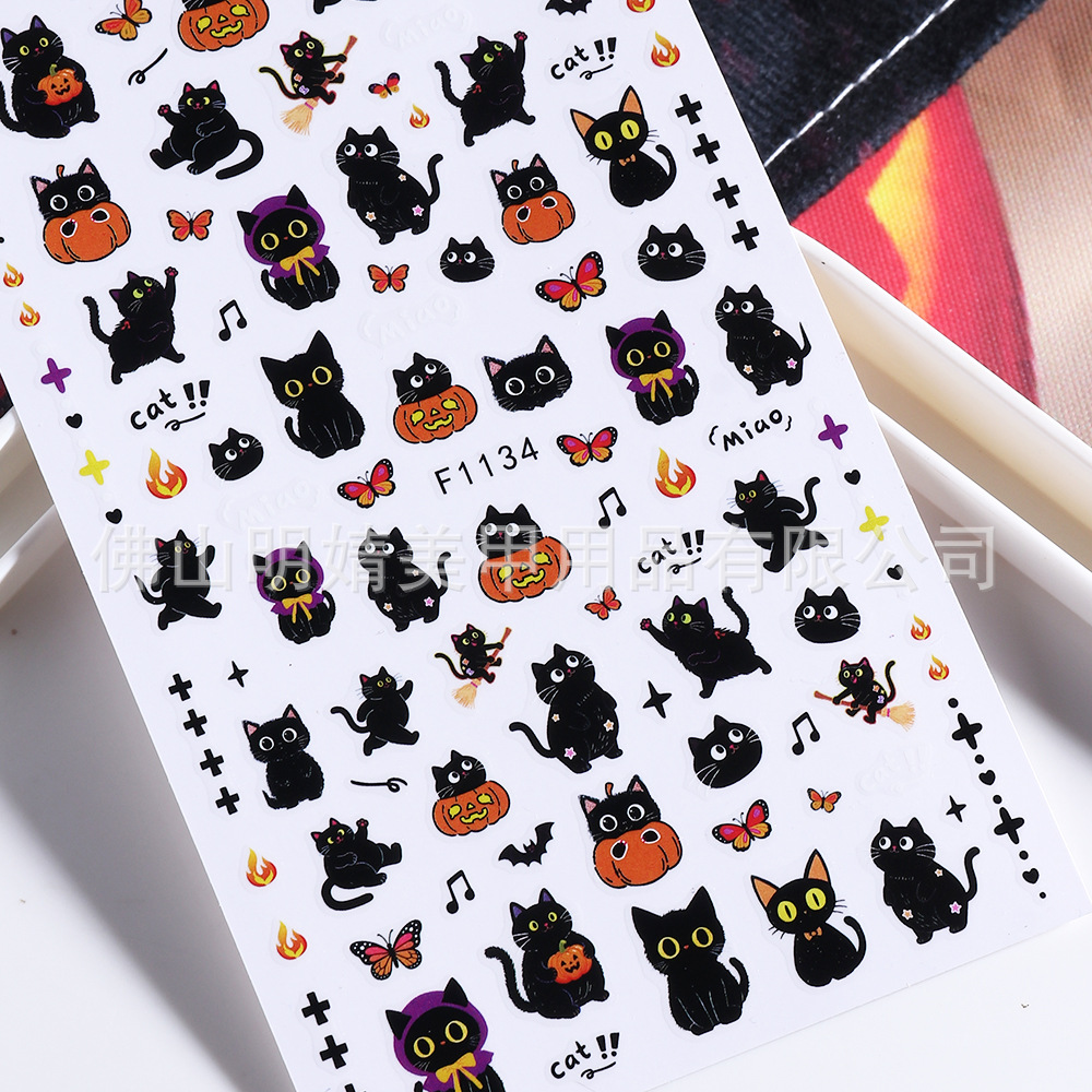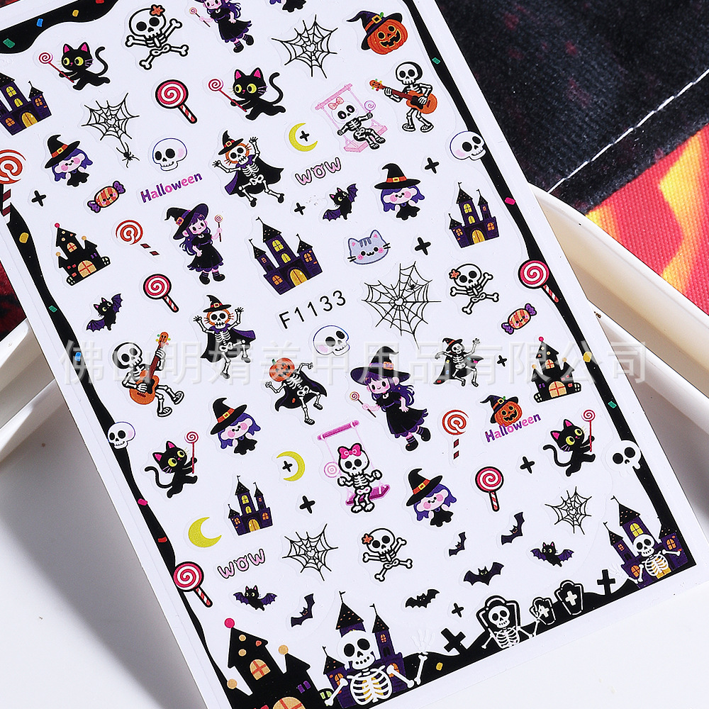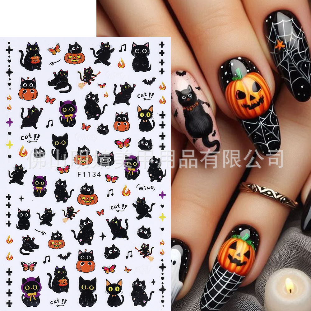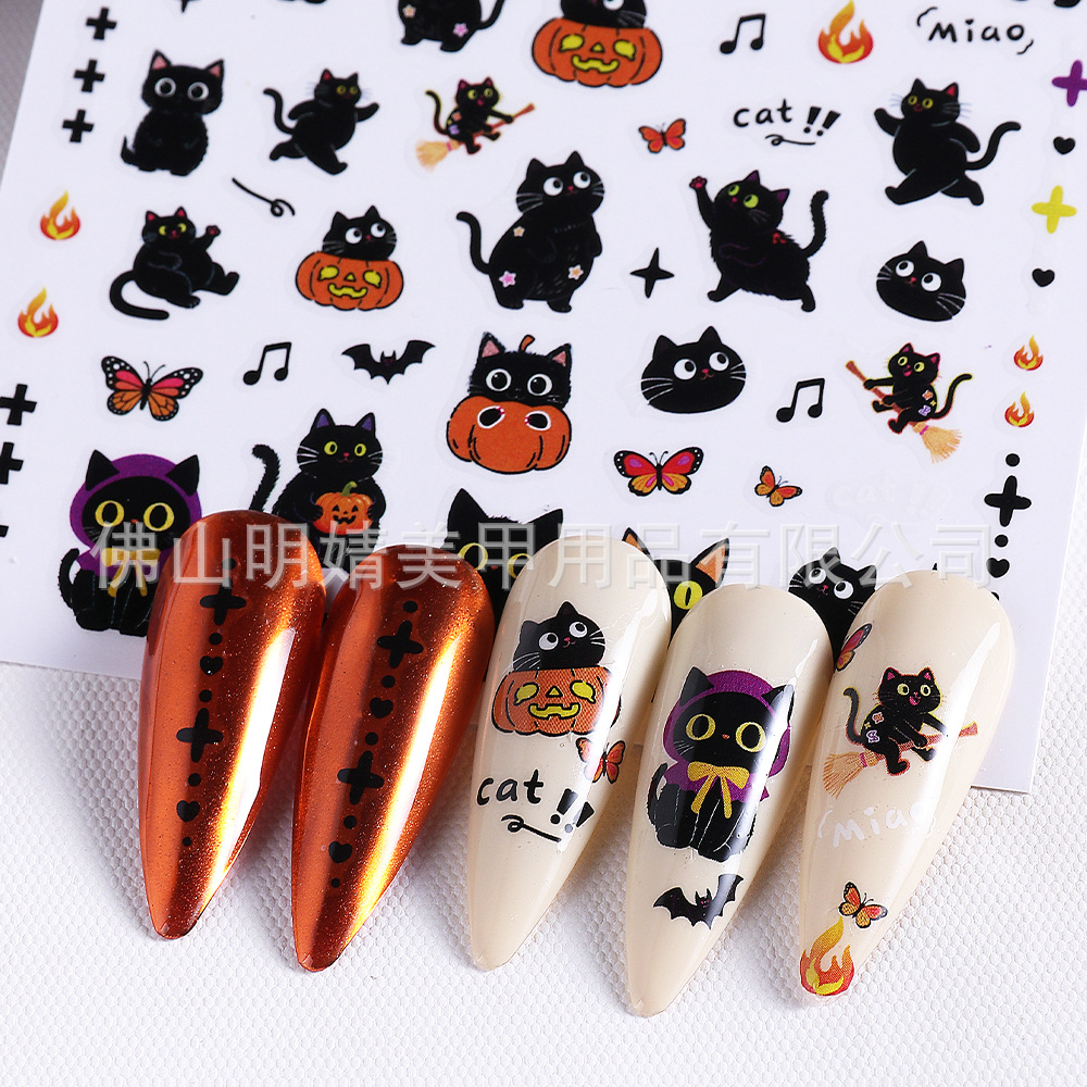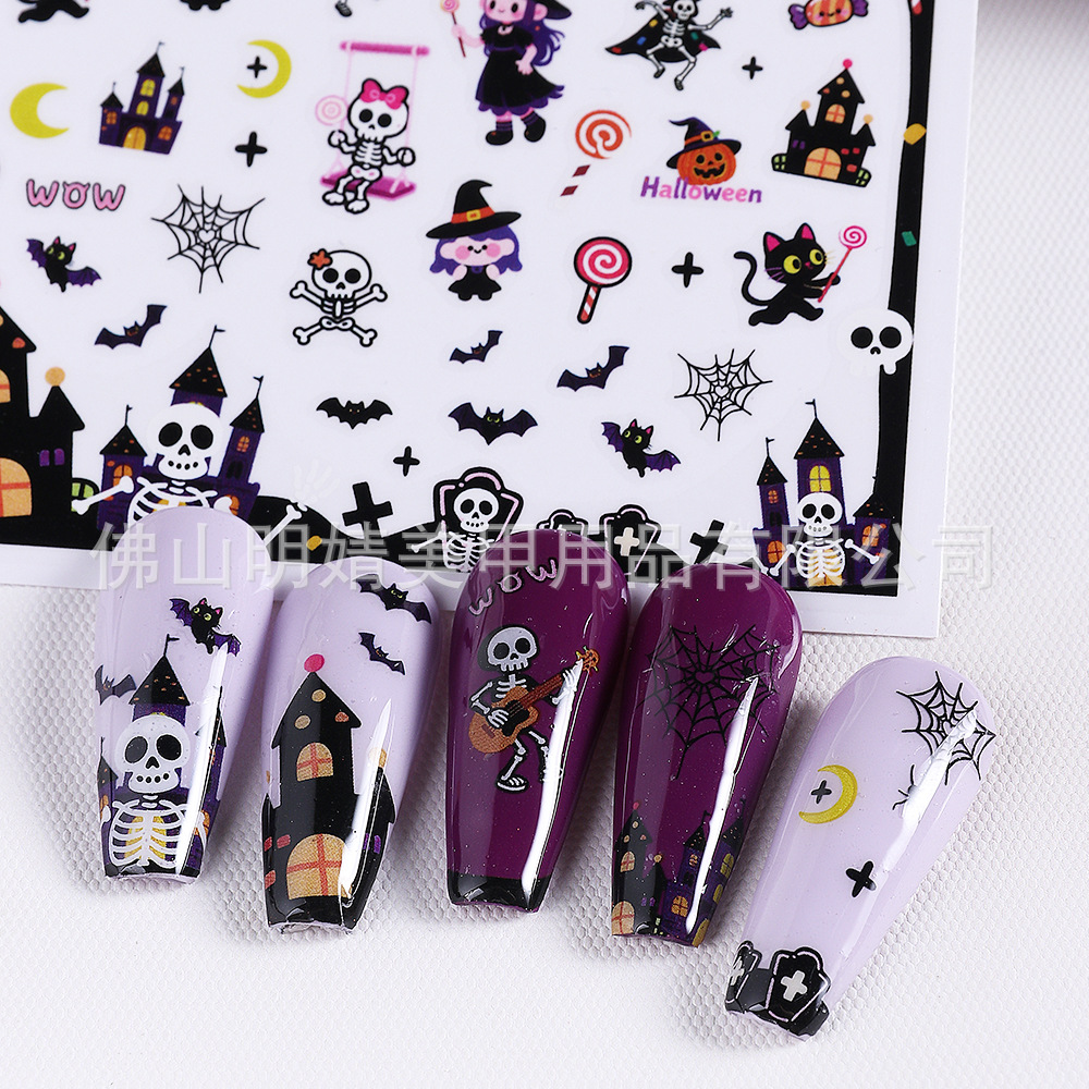 새로운 국경 간 할로윈 네일 아트 스티커 ins 스타일 다크 고딕 철 창 검은 고양이 호박 해골 할로윈 스티커스토어 가기