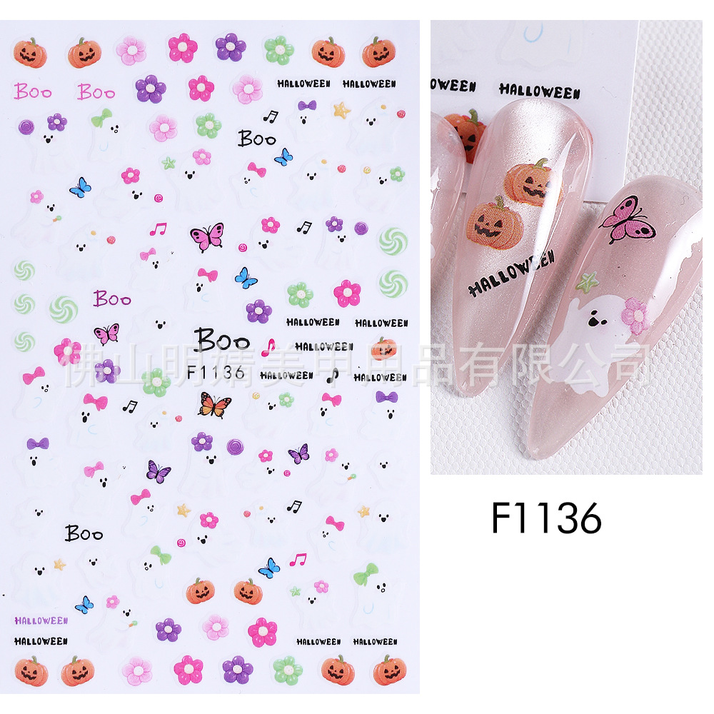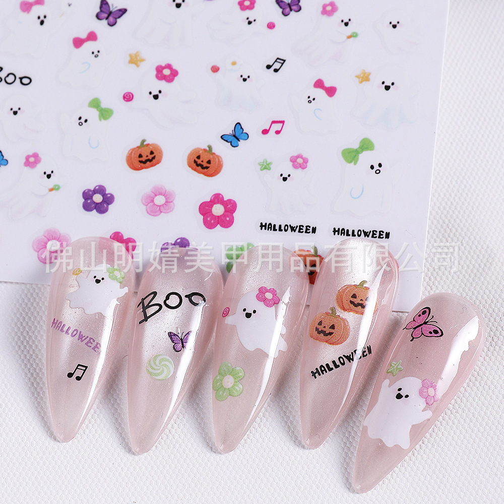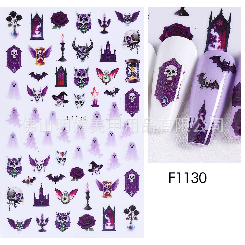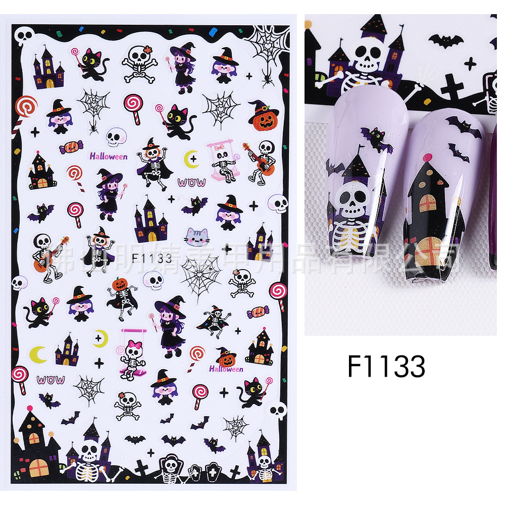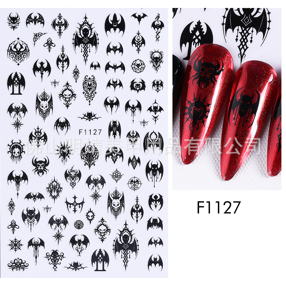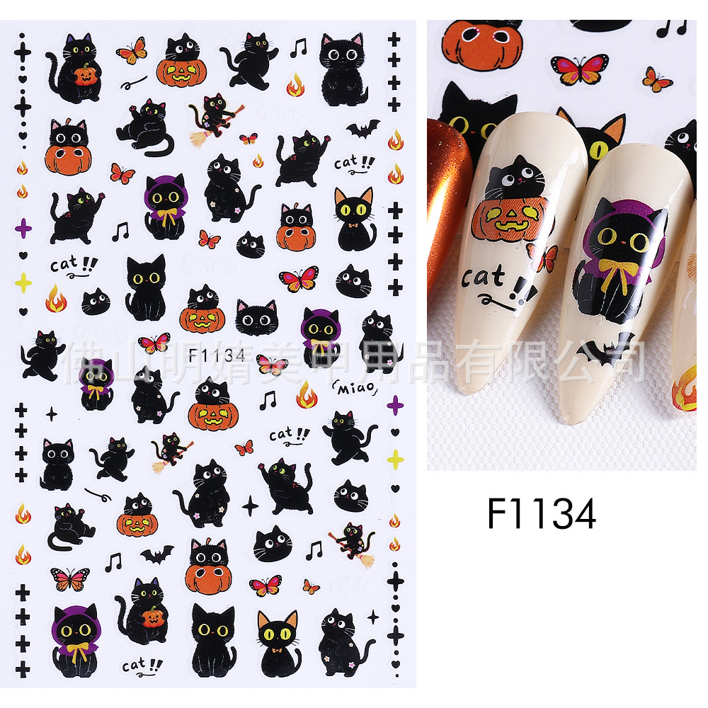 새로운 국경 간 할로윈 네일 아트 스티커 ins 스타일 다크 고딕 철 창 검은 고양이 호박 해골 할로윈 스티커스토어 가기