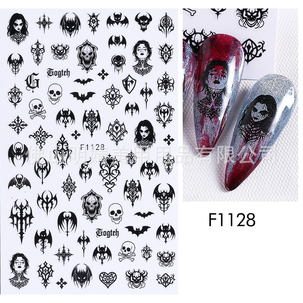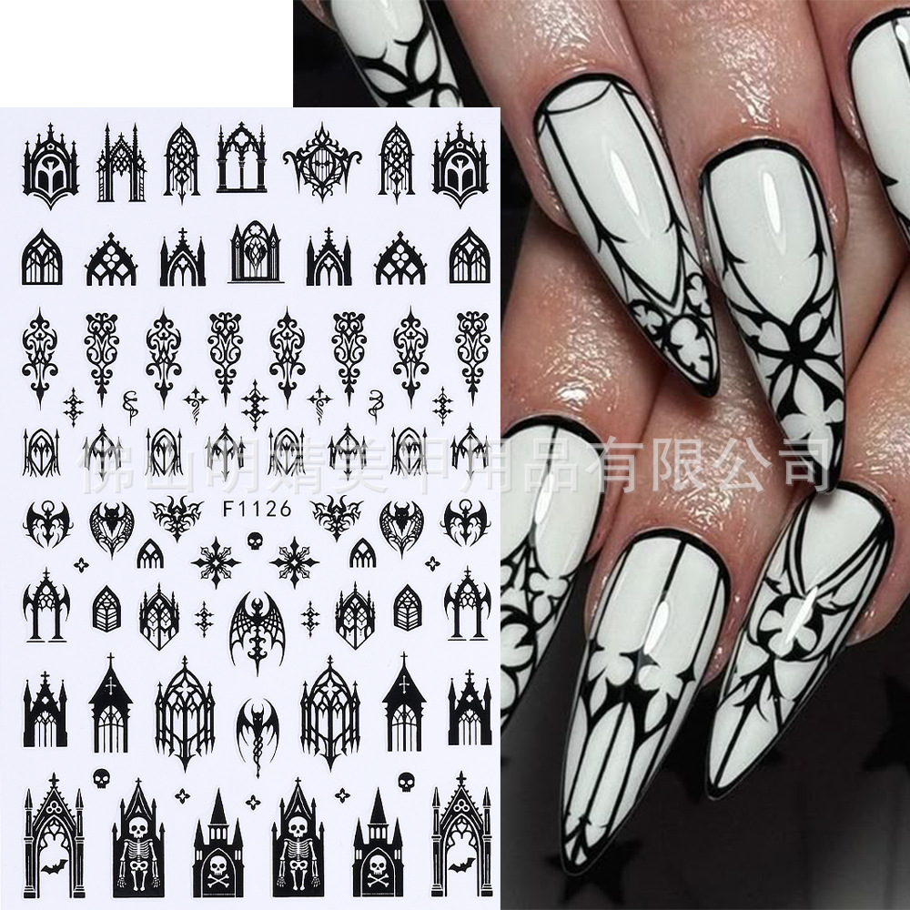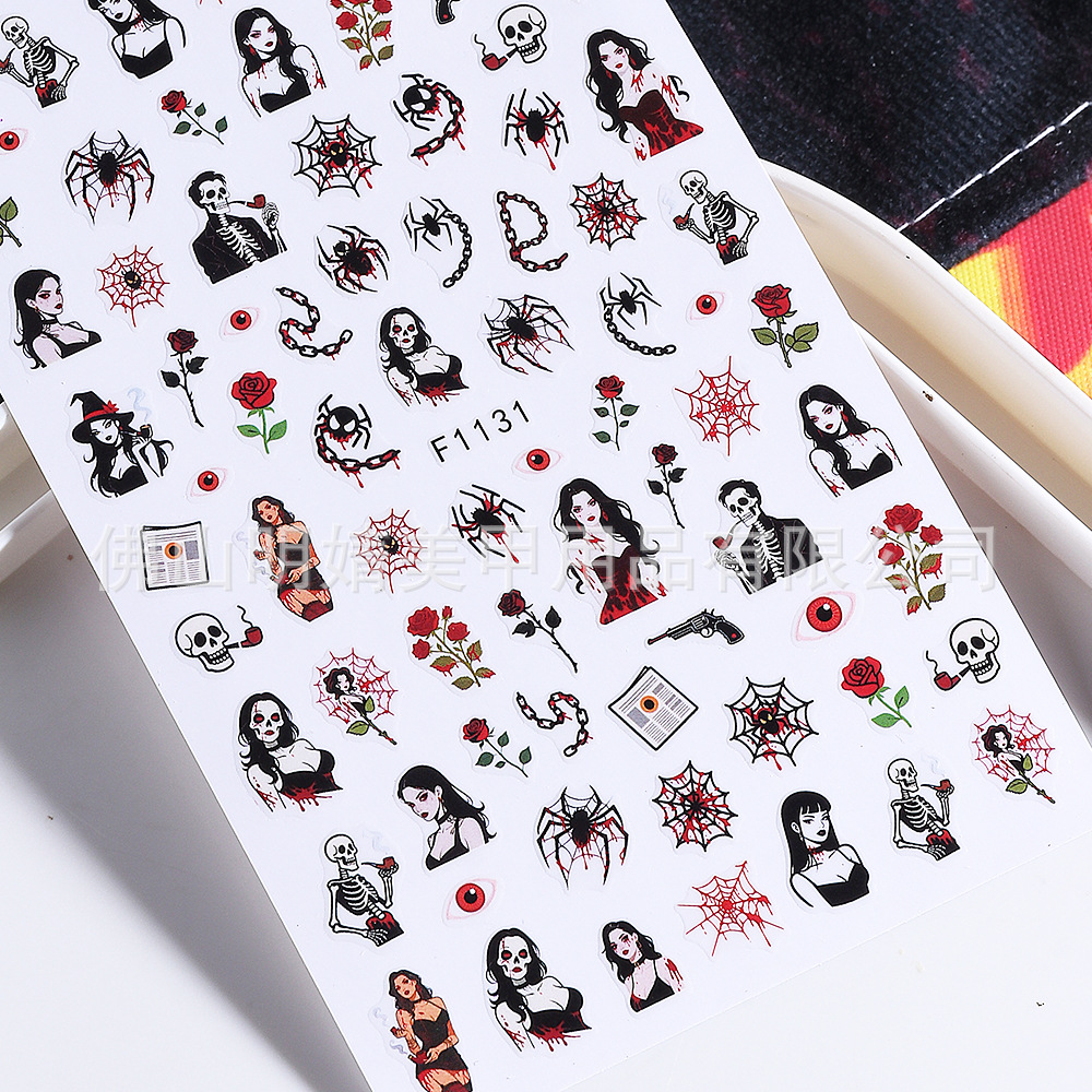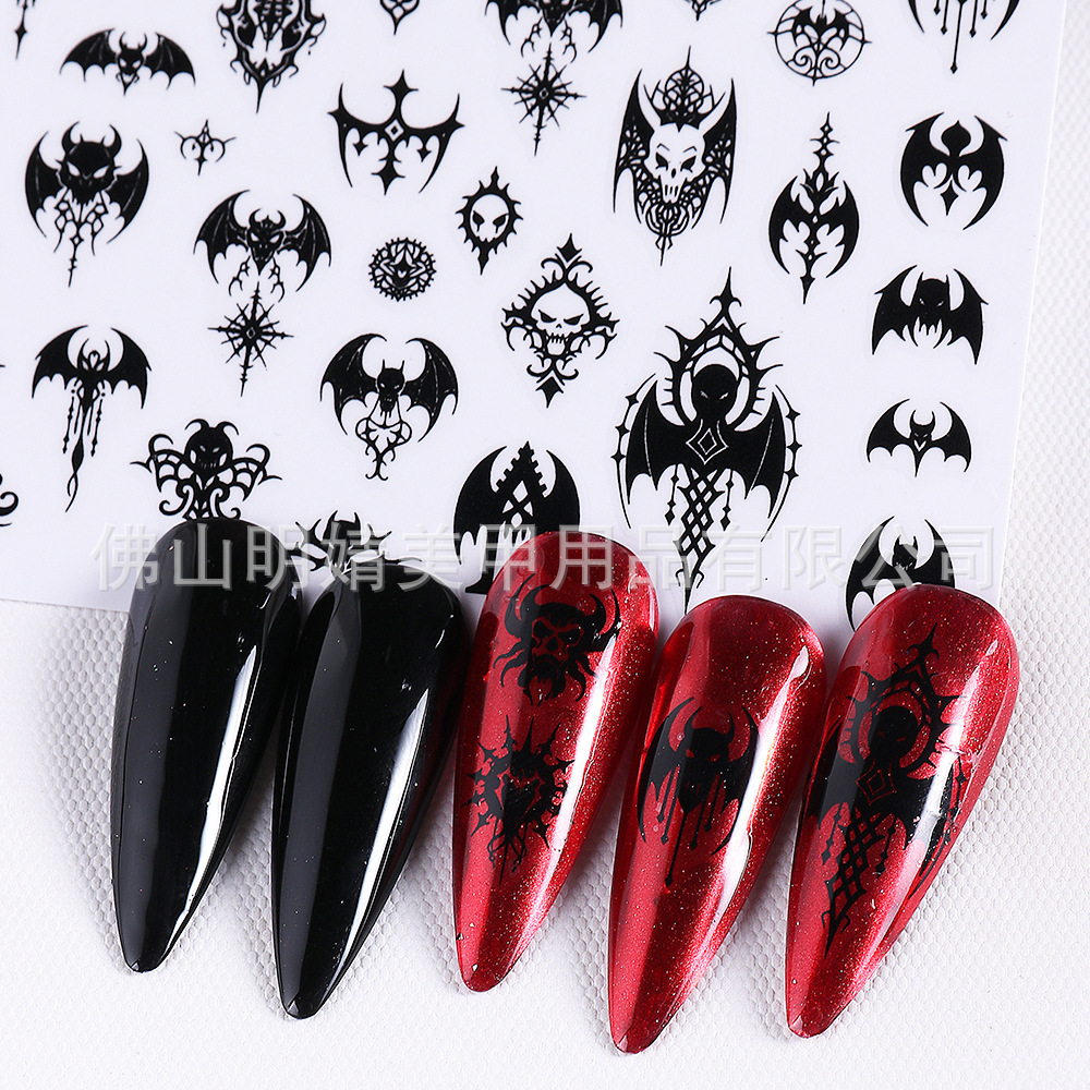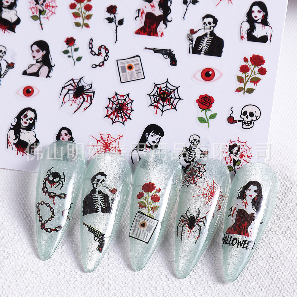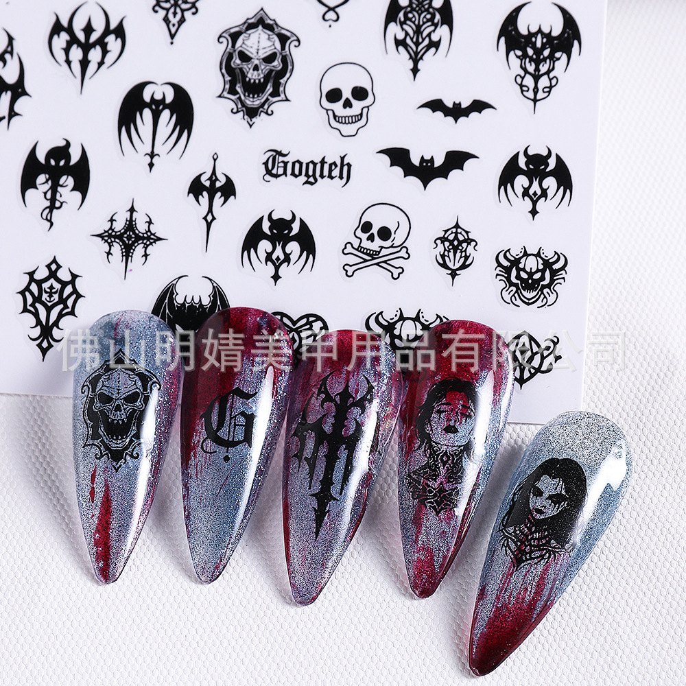 새로운 국경 간 할로윈 네일 아트 스티커 ins 스타일 다크 고딕 철 창 검은 고양이 호박 해골 할로윈 스티커