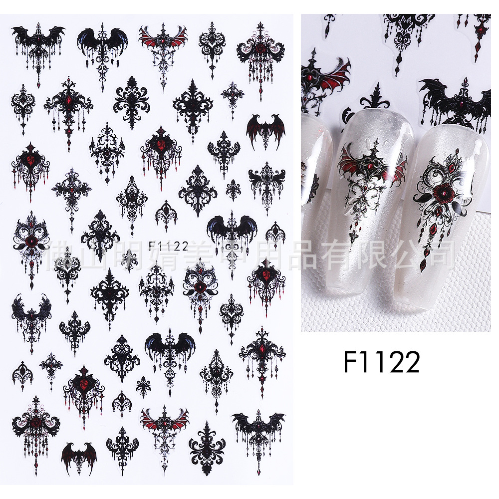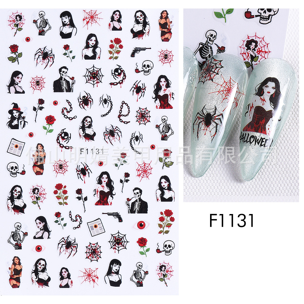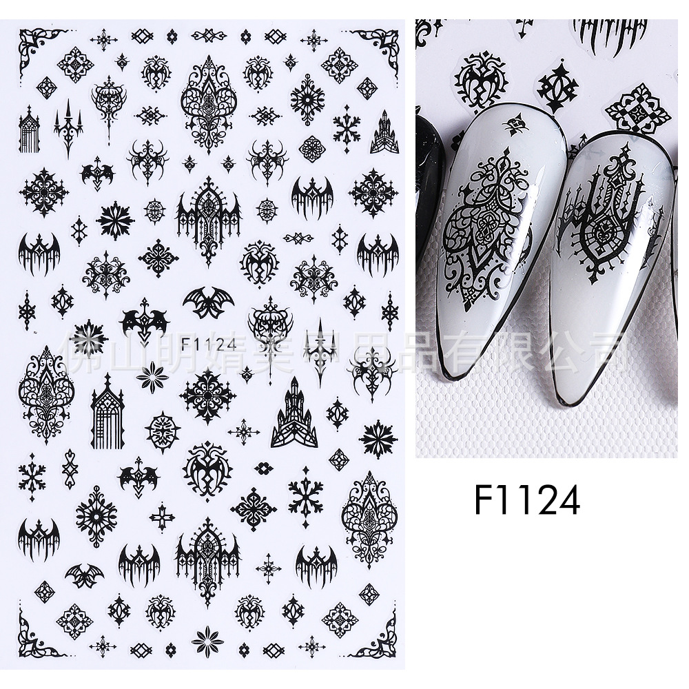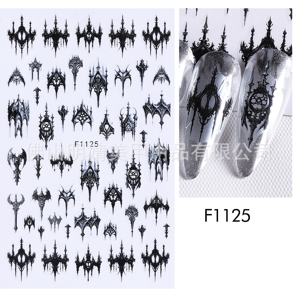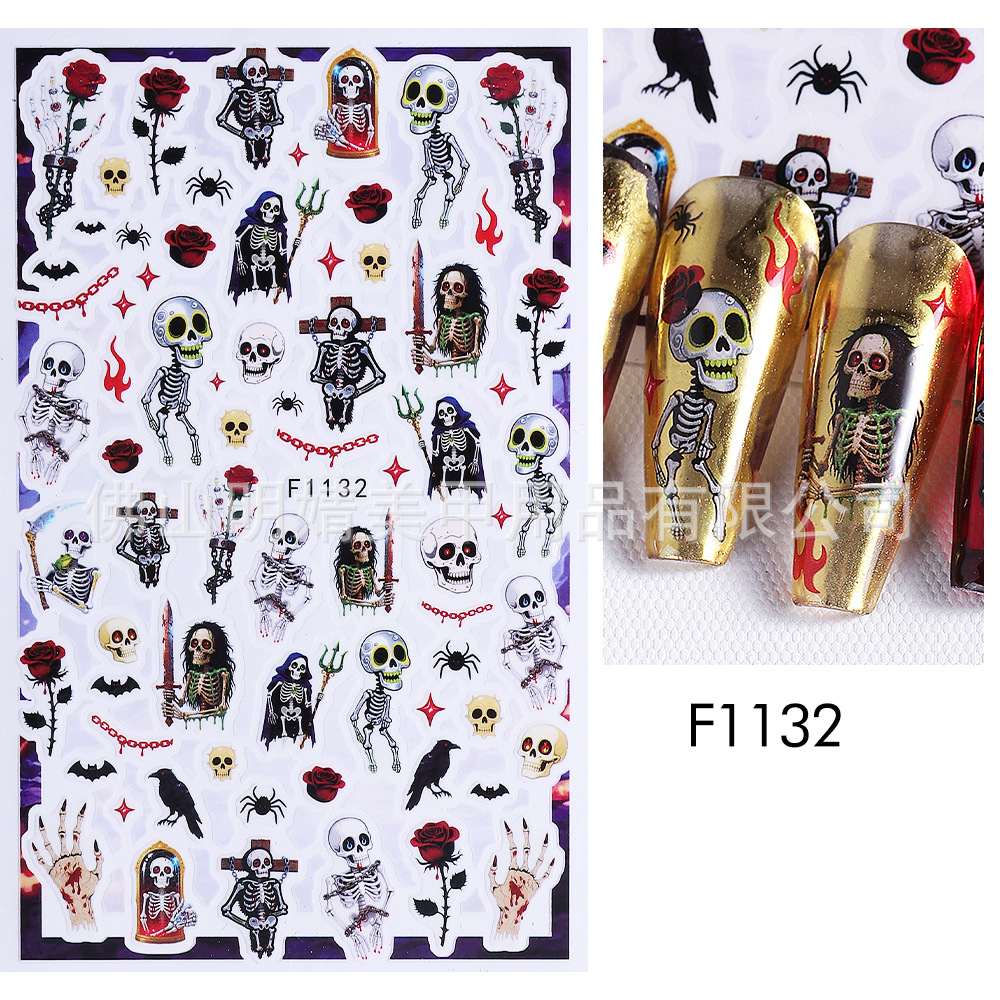 새로운 국경 간 할로윈 네일 아트 스티커 ins 스타일 다크 고딕 철 창 검은 고양이 호박 해골 할로윈 스티커