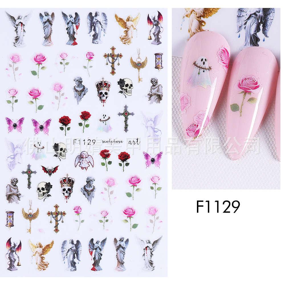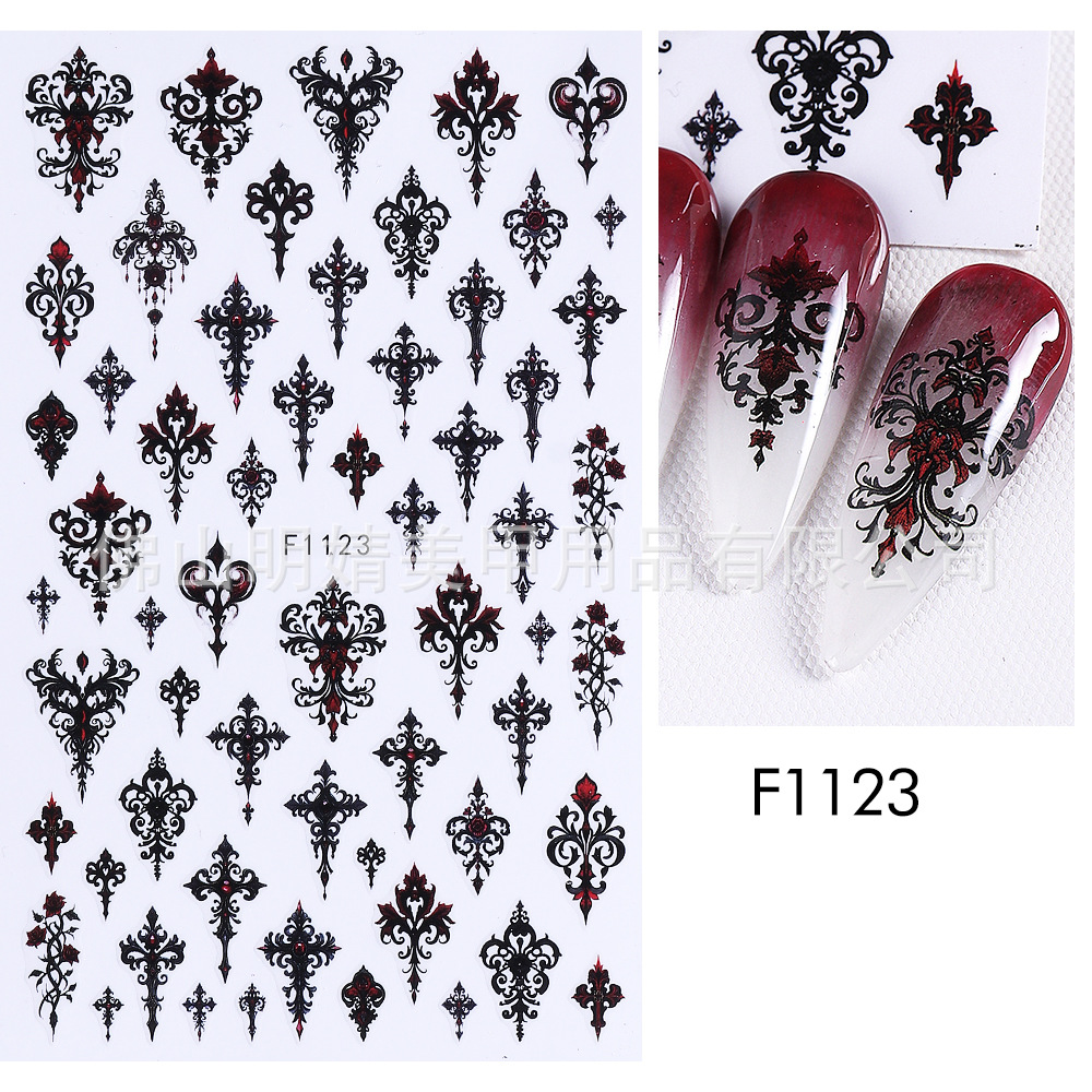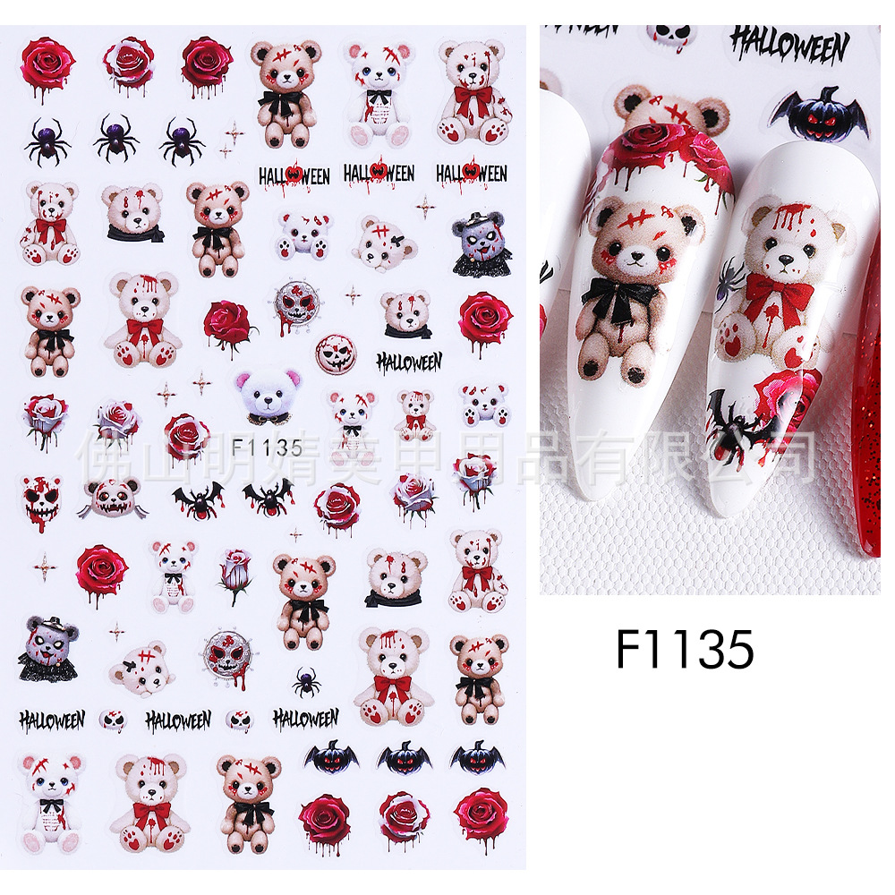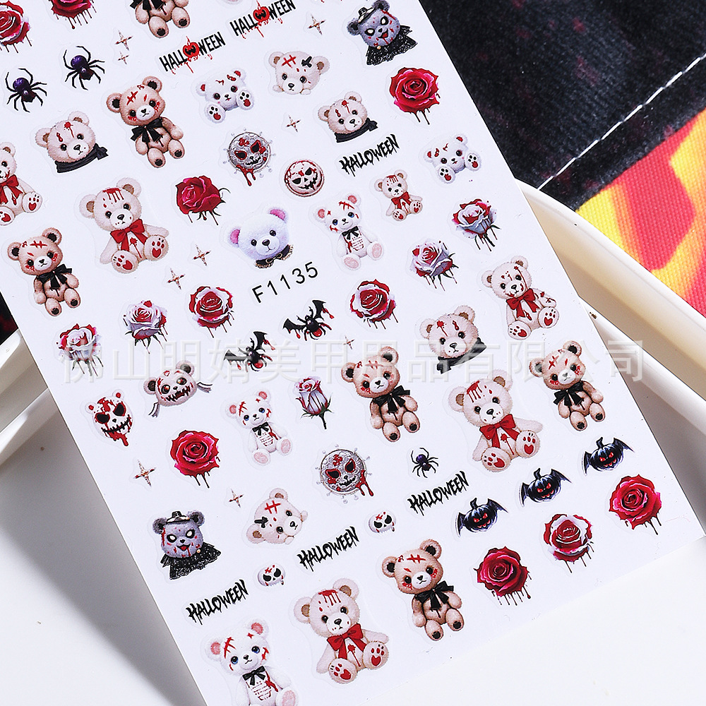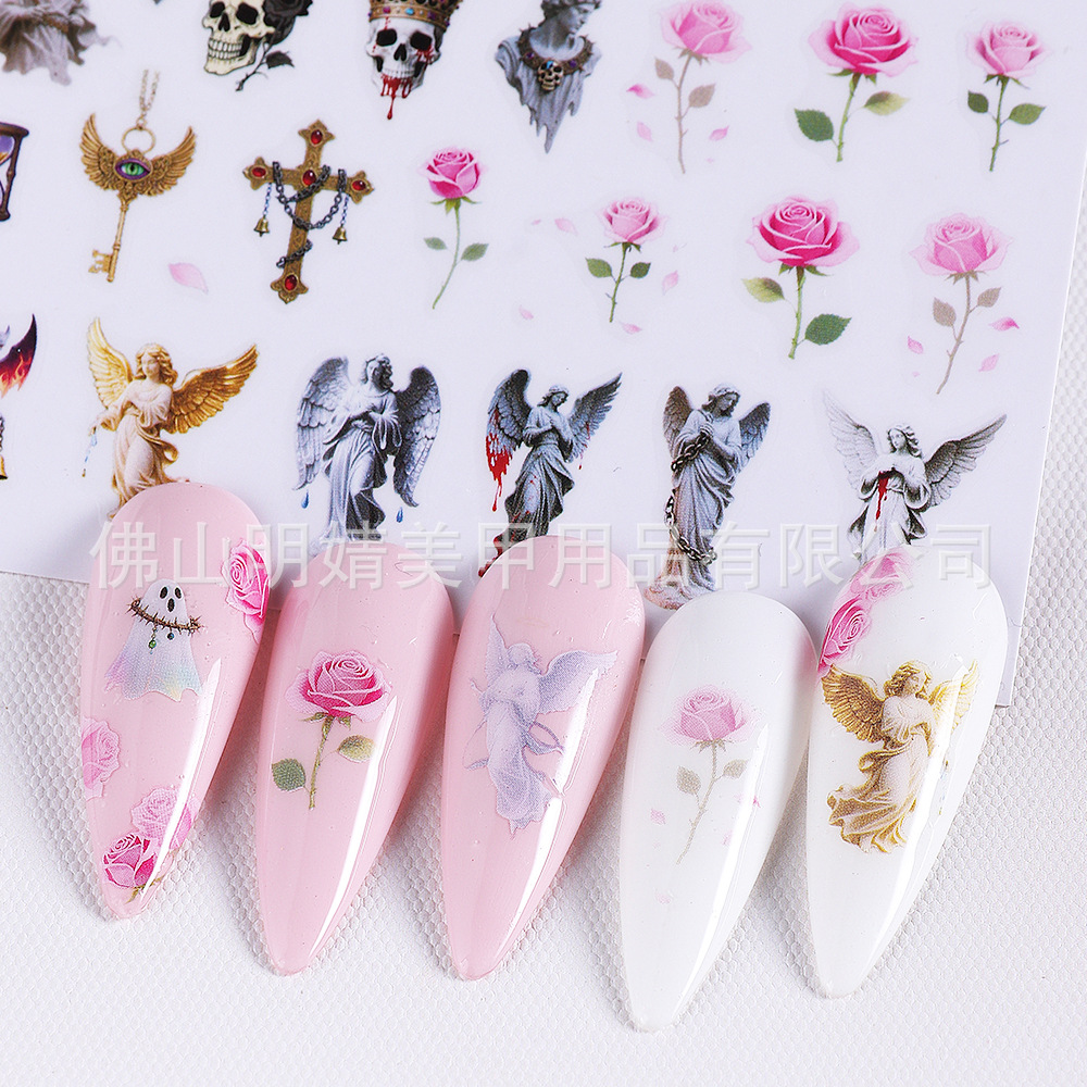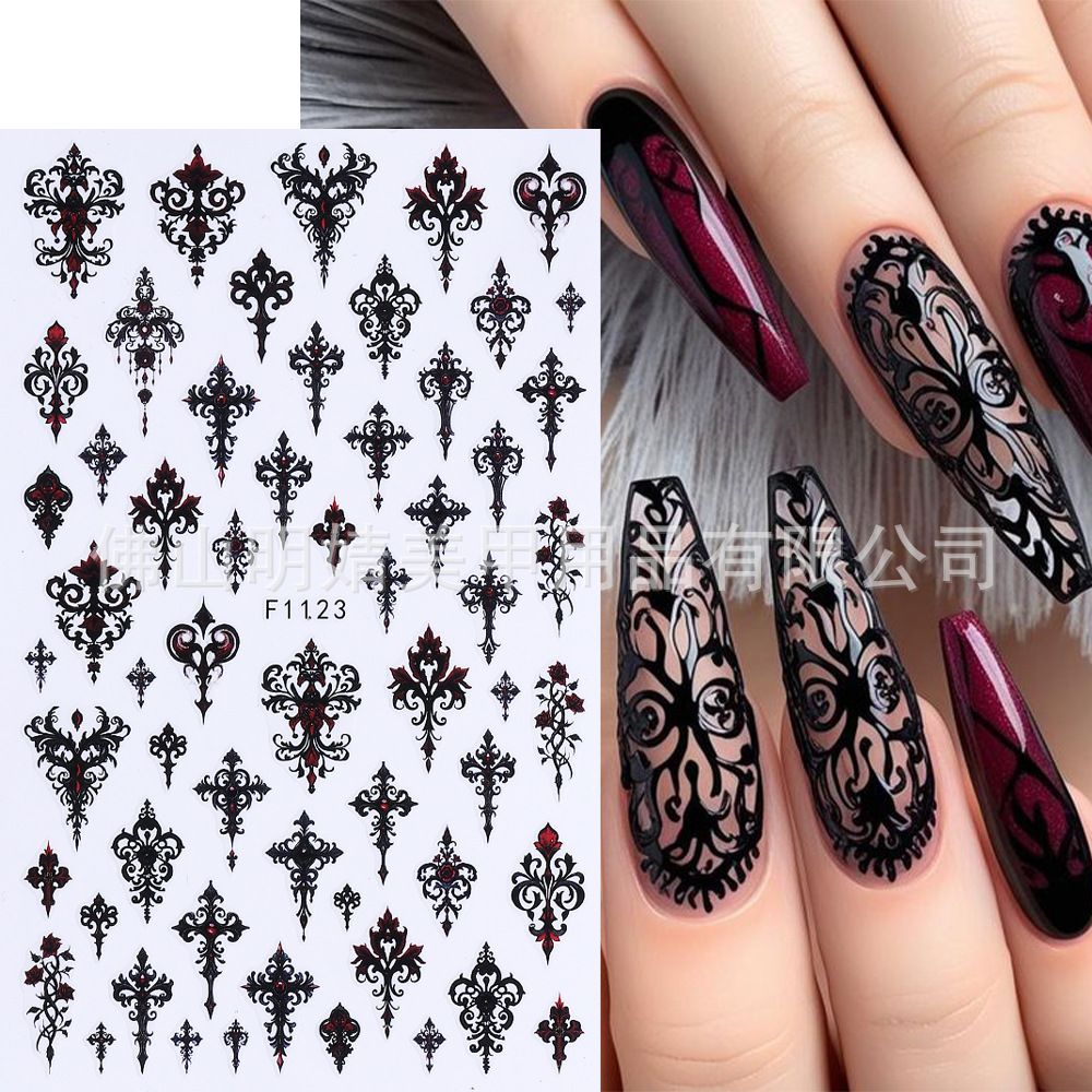 새로운 국경 간 할로윈 네일 아트 스티커 ins 스타일 다크 고딕 철 창 검은 고양이 호박 해골 할로윈 스티커