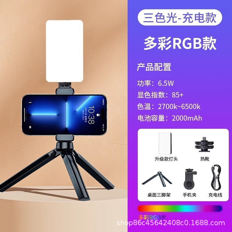 • RGB 컬러풀 + 듀얼 색온도 포켓 램프 + 휴대폰 클립 + 데스크탑 삼각대
