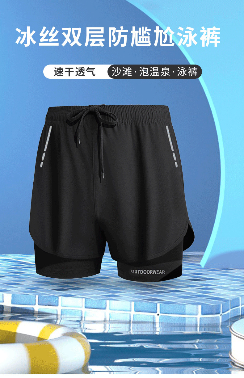 수영 바지 남성 스포츠 복서 팬티 더블 레이어 안티 당황스러운 빠른 건조 통기성 새로운 비치 바지 휴가 전문 수영복 도매스토어 가기