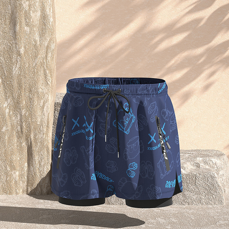 남성용 수영복, 전문적이고 당황스러운 대형 루즈한 더블 레이어 수영복, 자외선 차단제, 온천 전신 남성용 수영복 슈트