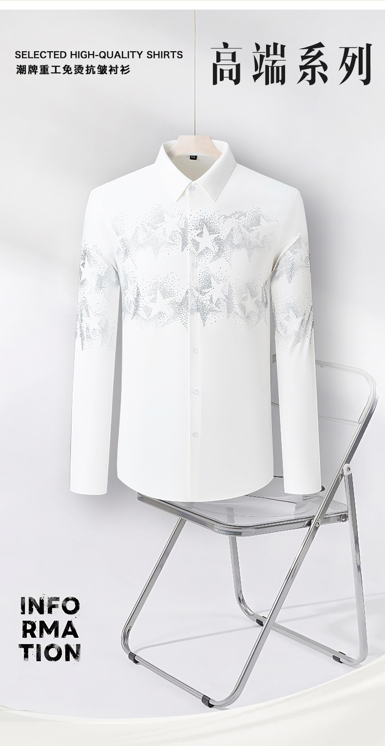 크로스보더 남성복 라이트 럭셔리 하이엔드 유럽 스타일 트렌디 브랜드 원피스 배송 스타일리쉬 슬림핏 셔츠 다림질 필요 없는 구김 방지 남성복스토어 가기