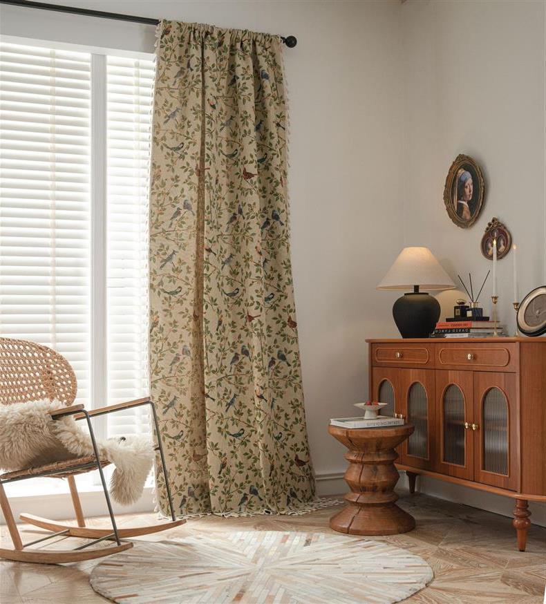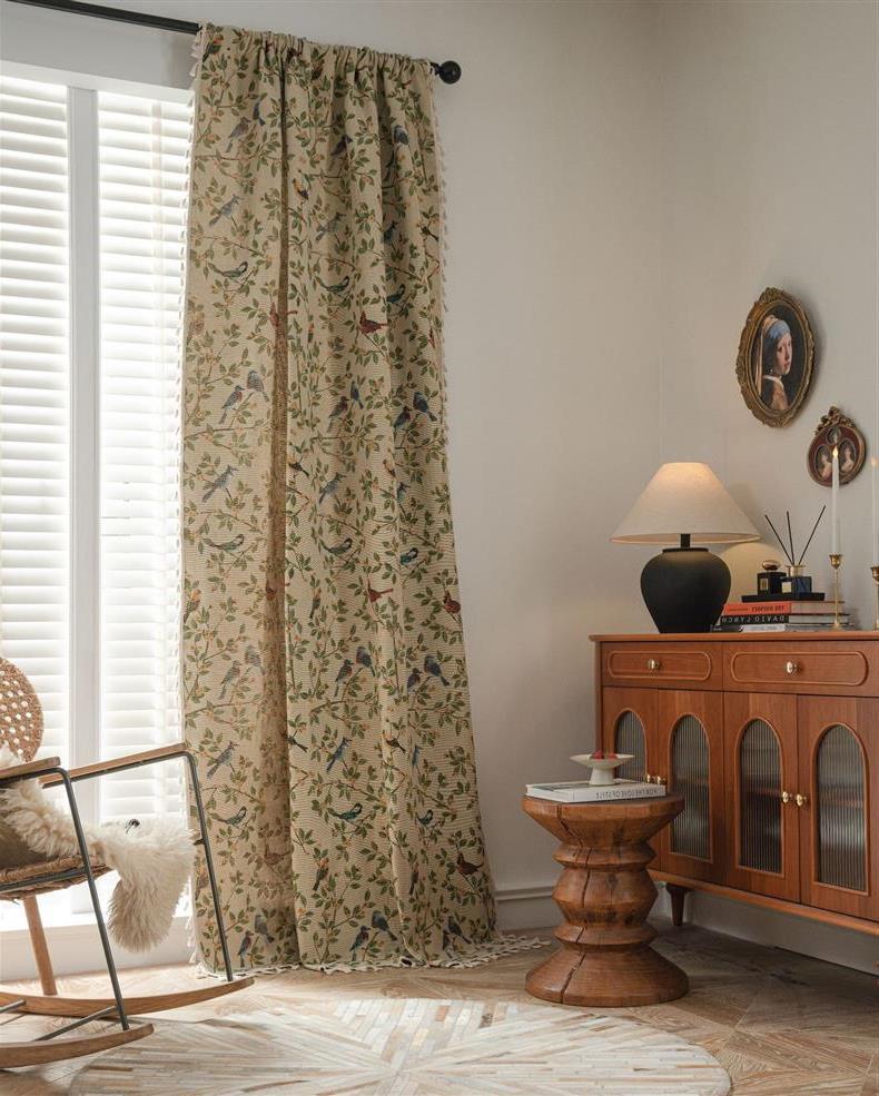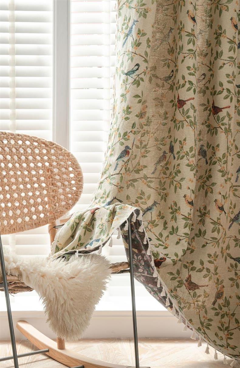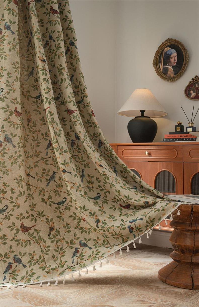 미국 컨트리 복고풍 여름 꽃과 새 연구실 모델 룸 거실 커튼 호텔 게스트 하우스 연구실 도어 커튼 커튼스토어 가기