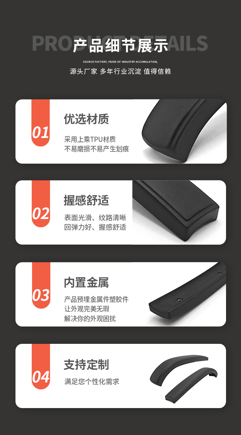 사무실 의자 직선형 곡선 PU 팔걸이 가구 하드웨어 액세서리 사무실 의자 교육 의자 컴퓨터 의자 팔걸이