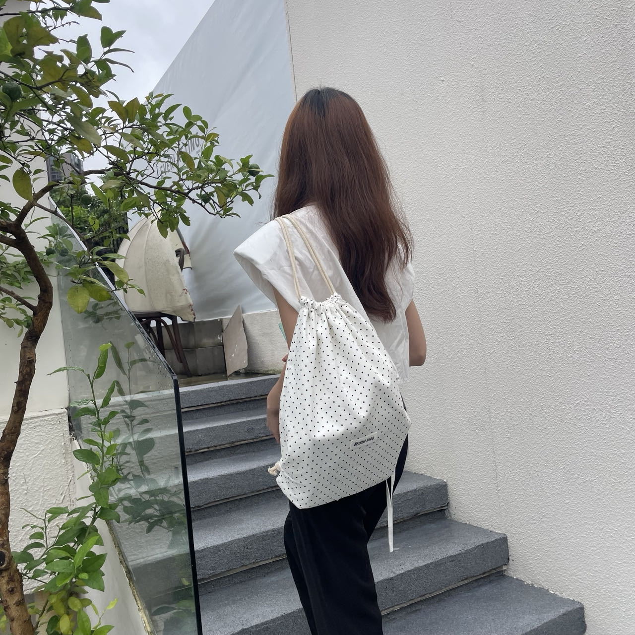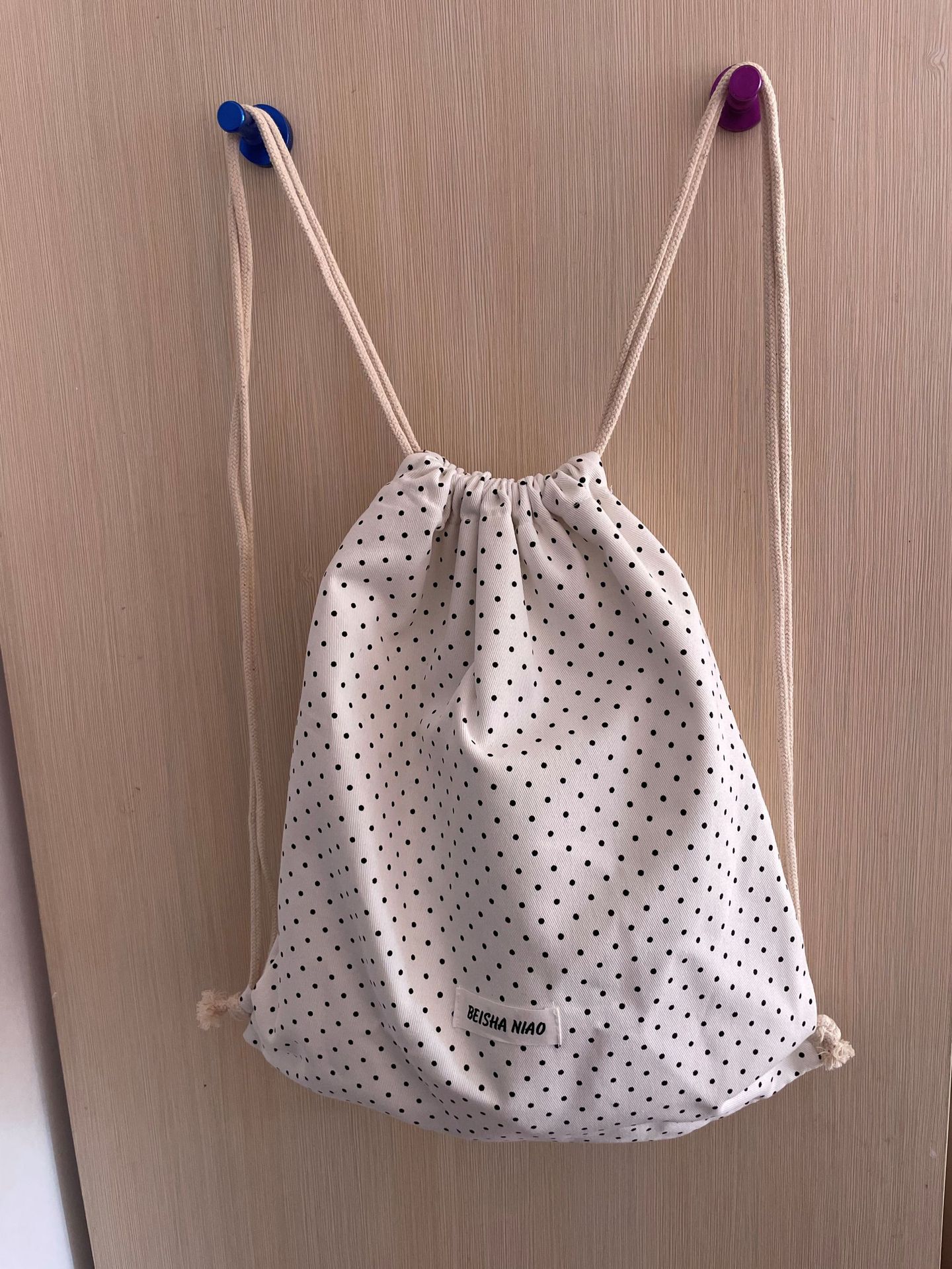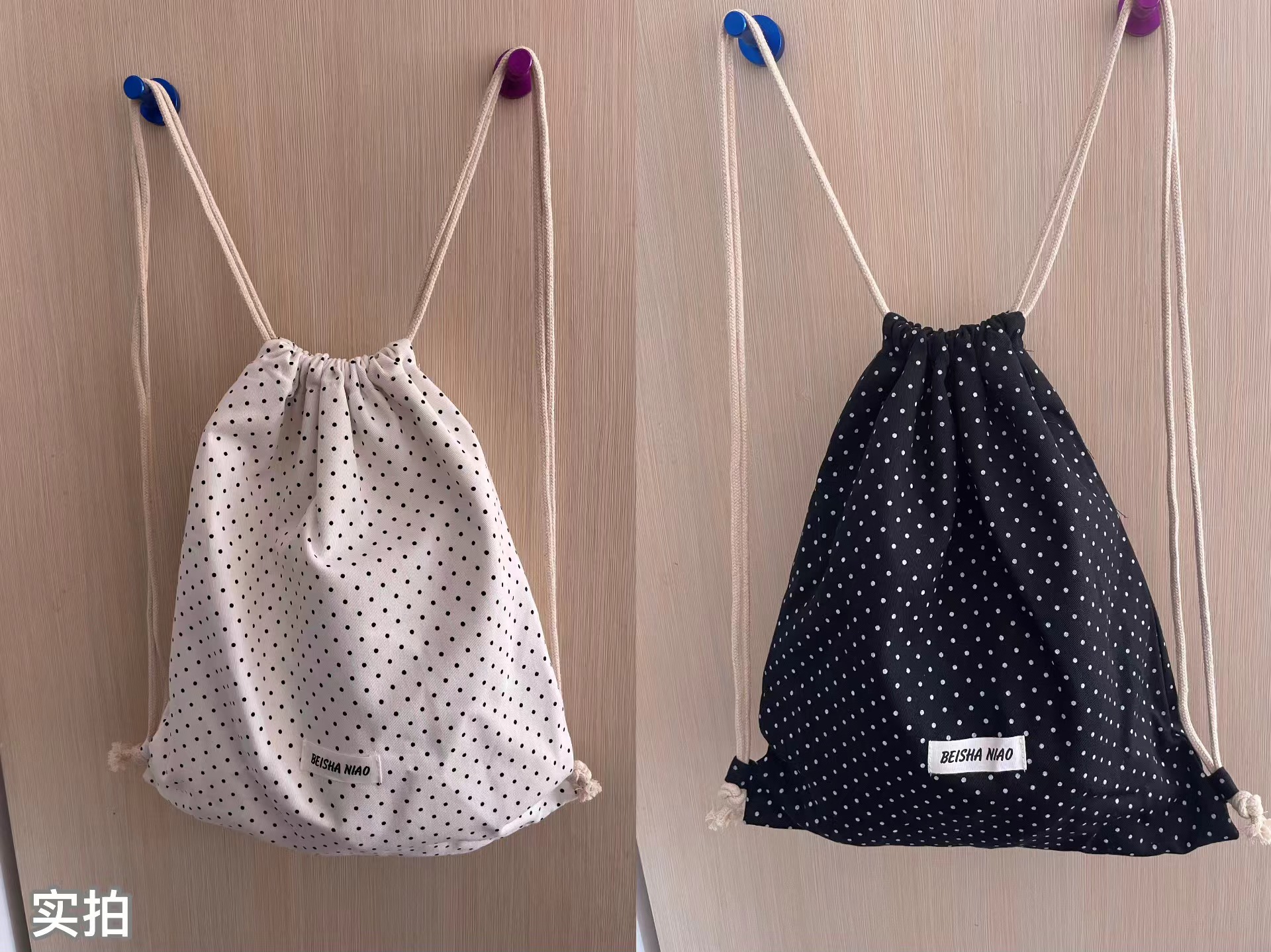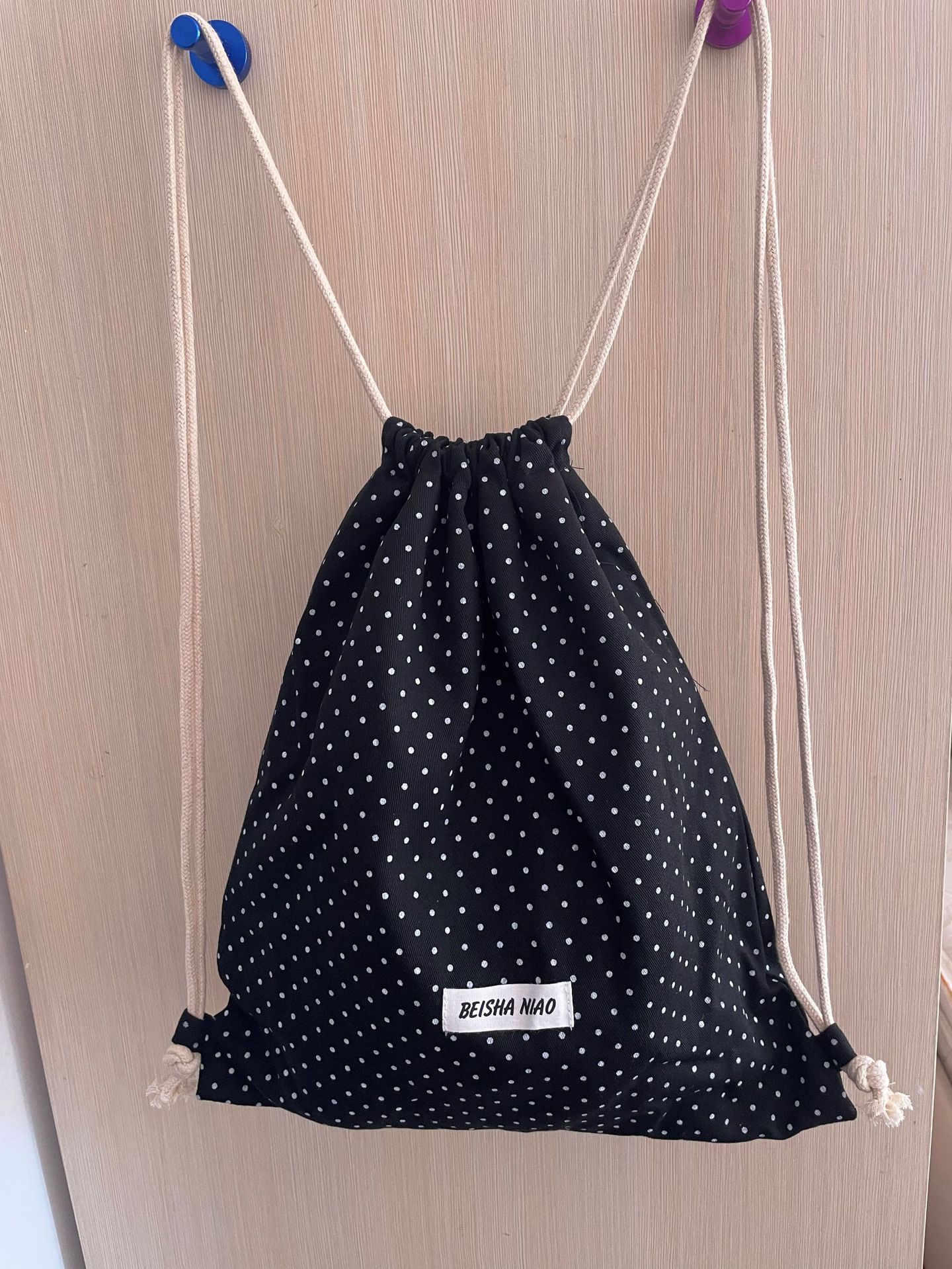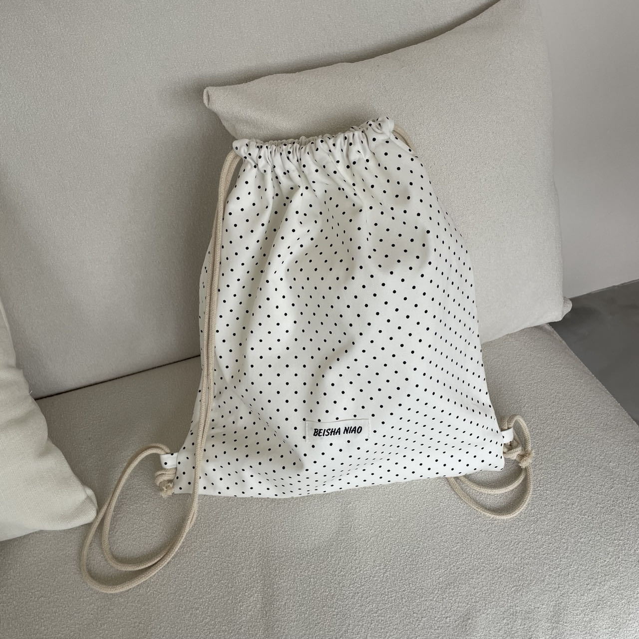 새로운 핫셀링 틈새 드로스트링 폴카 도트 백팩, 캐주얼하고 심플하며 다재다능한 대용량 여행 및 통근 백팩스토어 가기