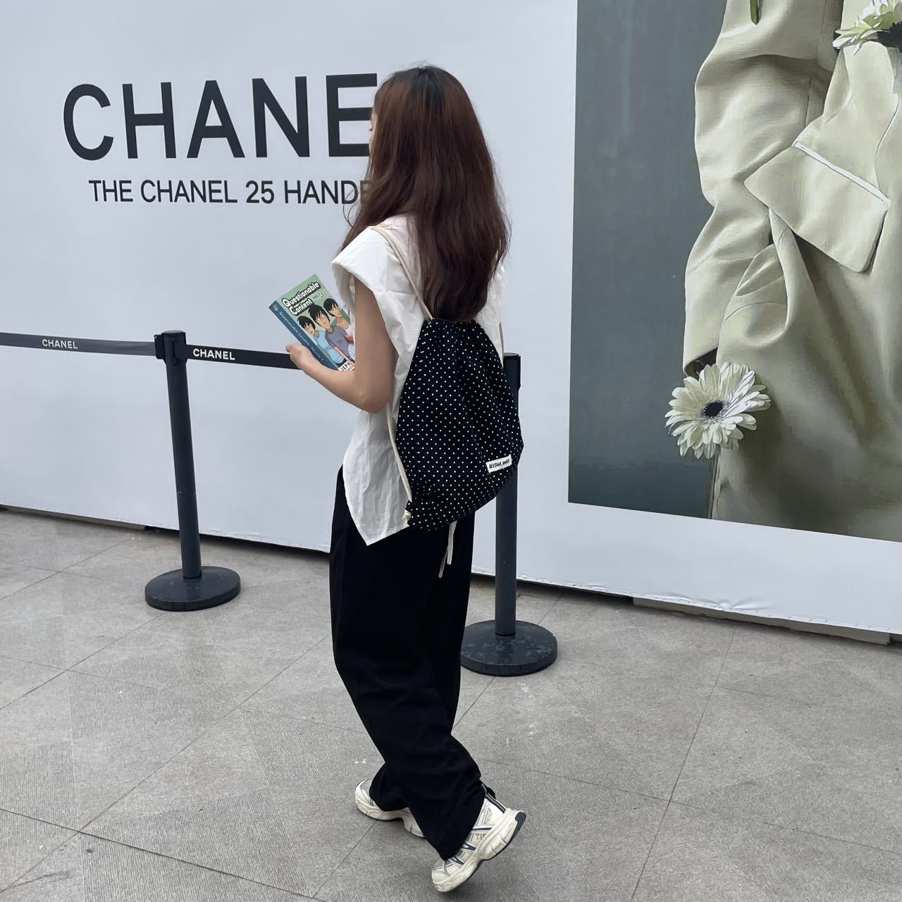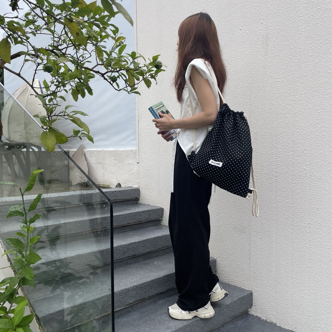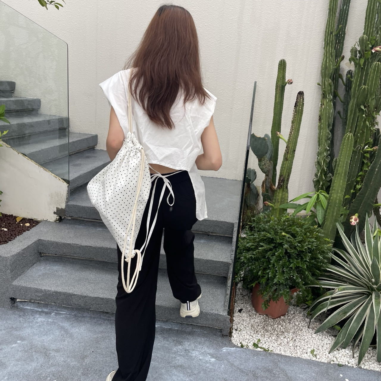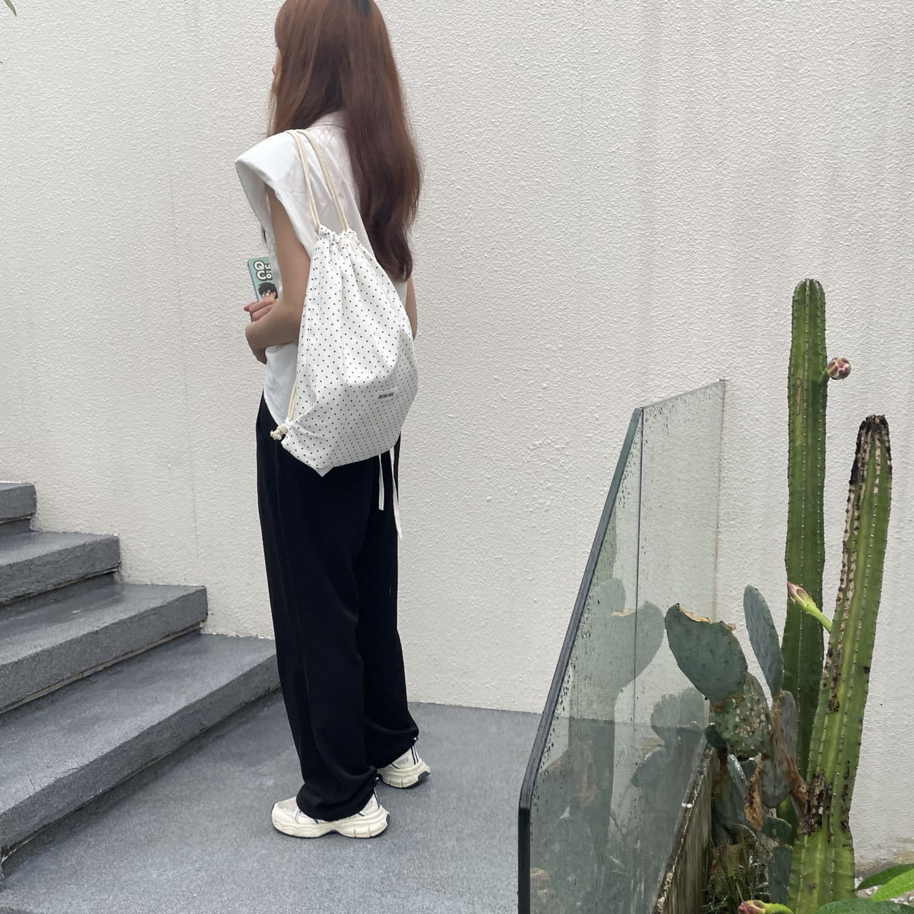 새로운 핫셀링 틈새 드로스트링 폴카 도트 백팩, 캐주얼하고 심플하며 다재다능한 대용량 여행 및 통근 백팩스토어 가기