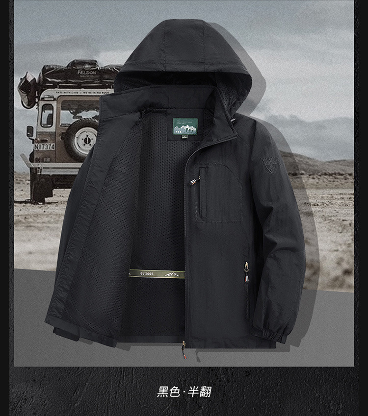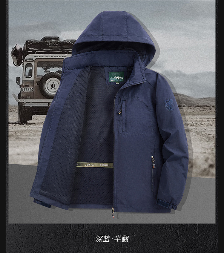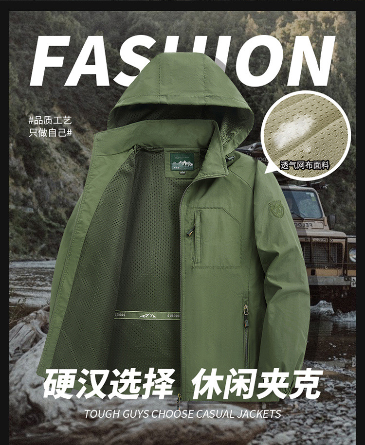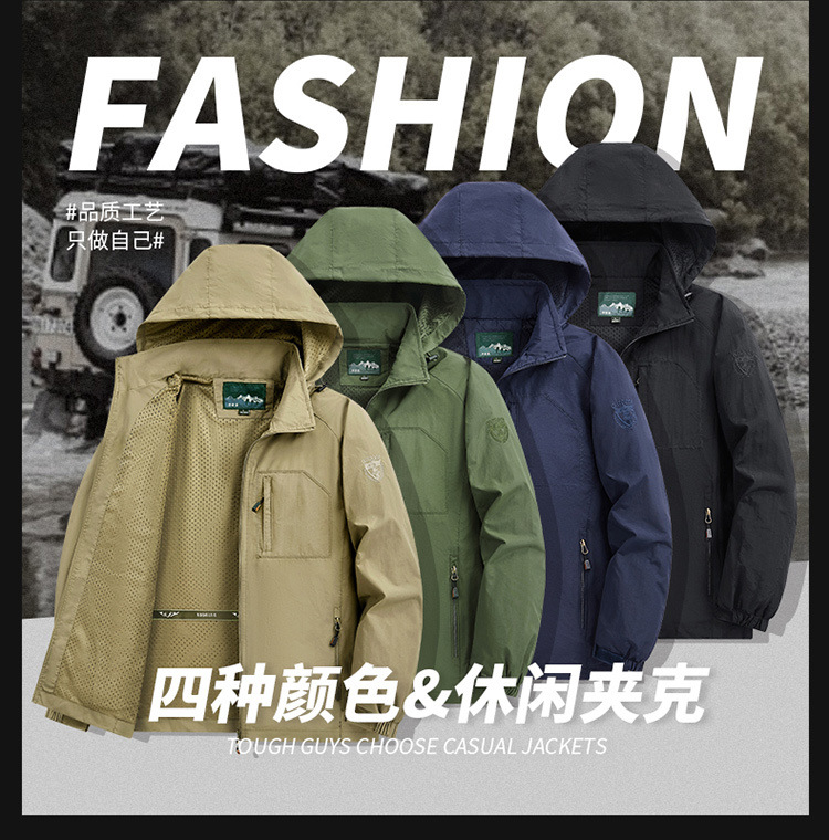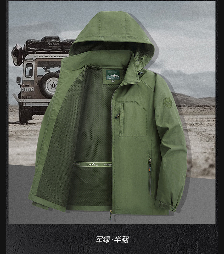 국경 간 봄, 가을 남성 야외 재킷 느슨한 캐주얼 속건성 대형 등산 방풍 및 방수 재킷
