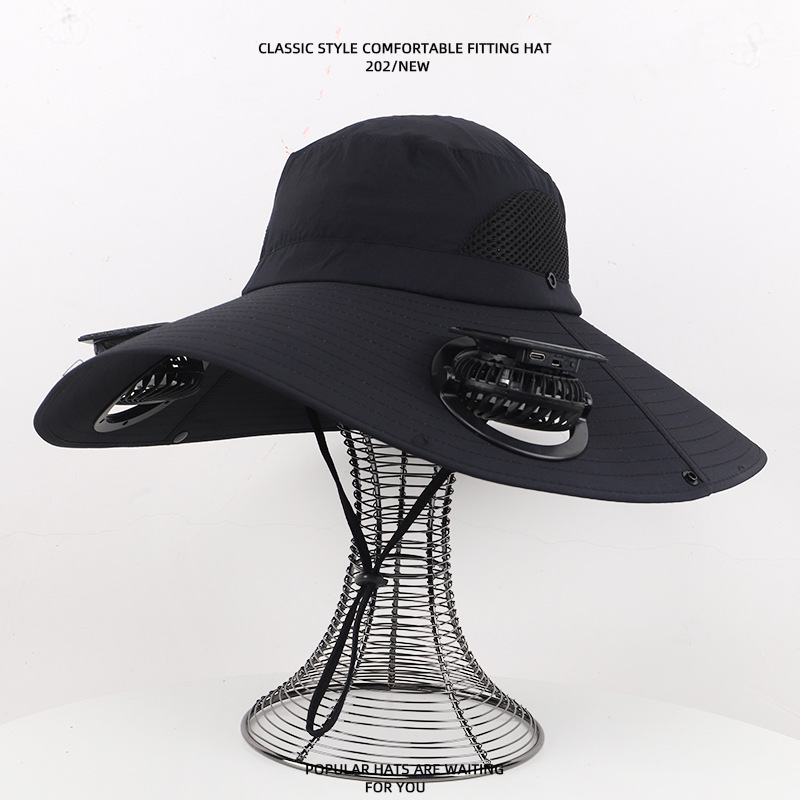 국경 간 태양광 팬 모자 여름 모자 낚시 태양 보호 차양 에어컨 어부 등산 자외선 차단 남성용 모자