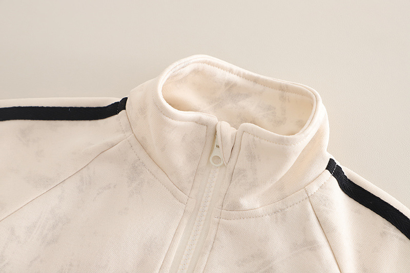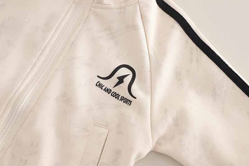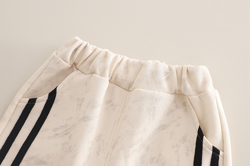 2025 봄과 가을 새로운 스타일 소년 스트링 라벨 두 줄무늬 스웨트 셔츠와 바지 투피스 세트 공장 도매스토어 가기
