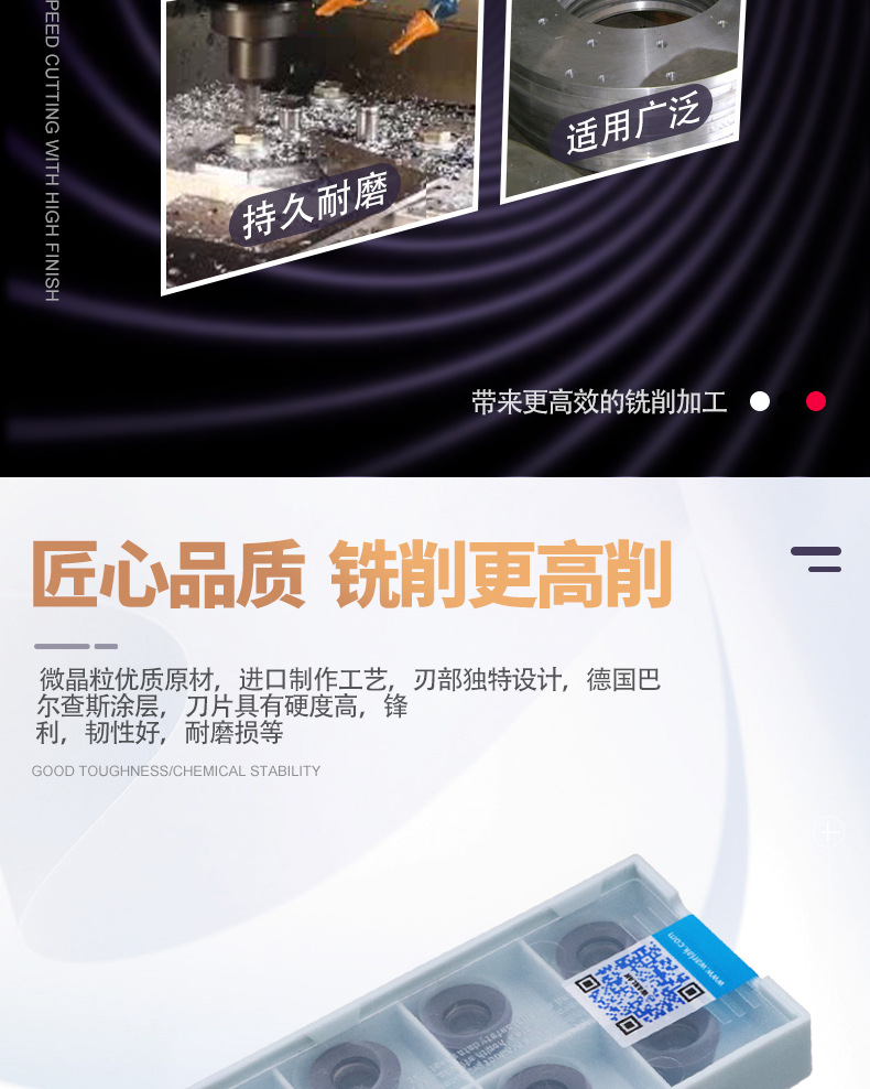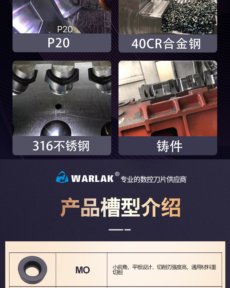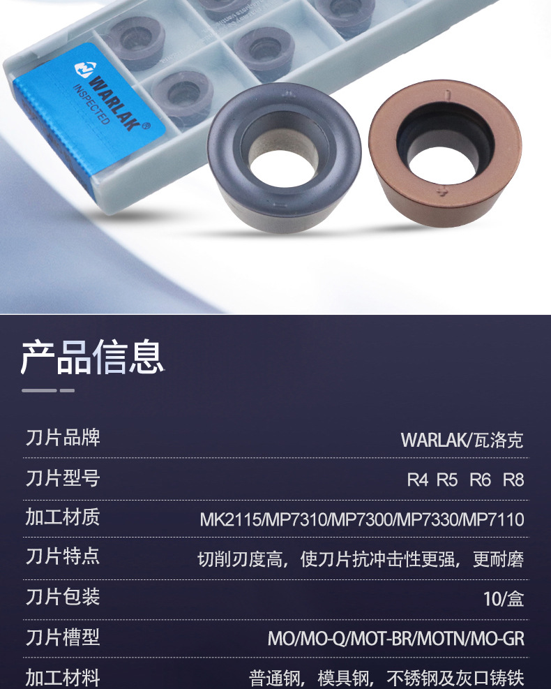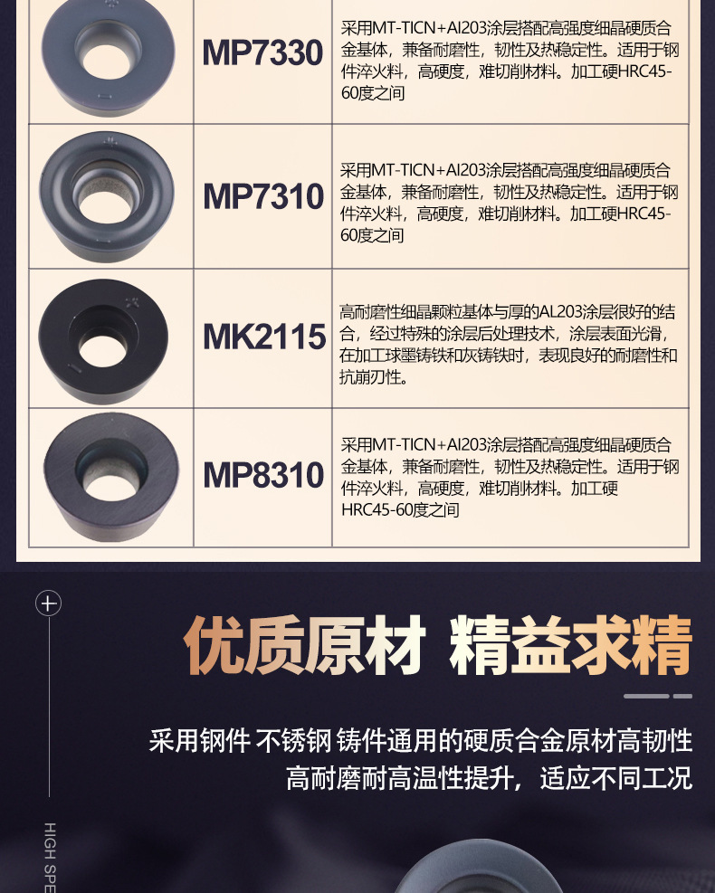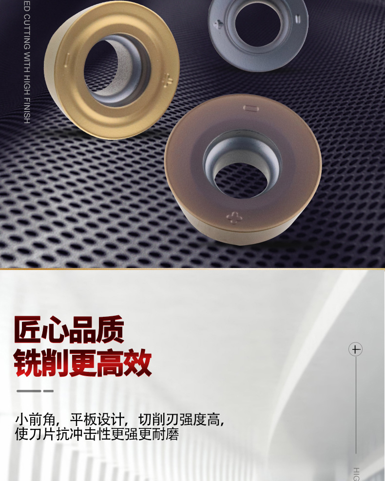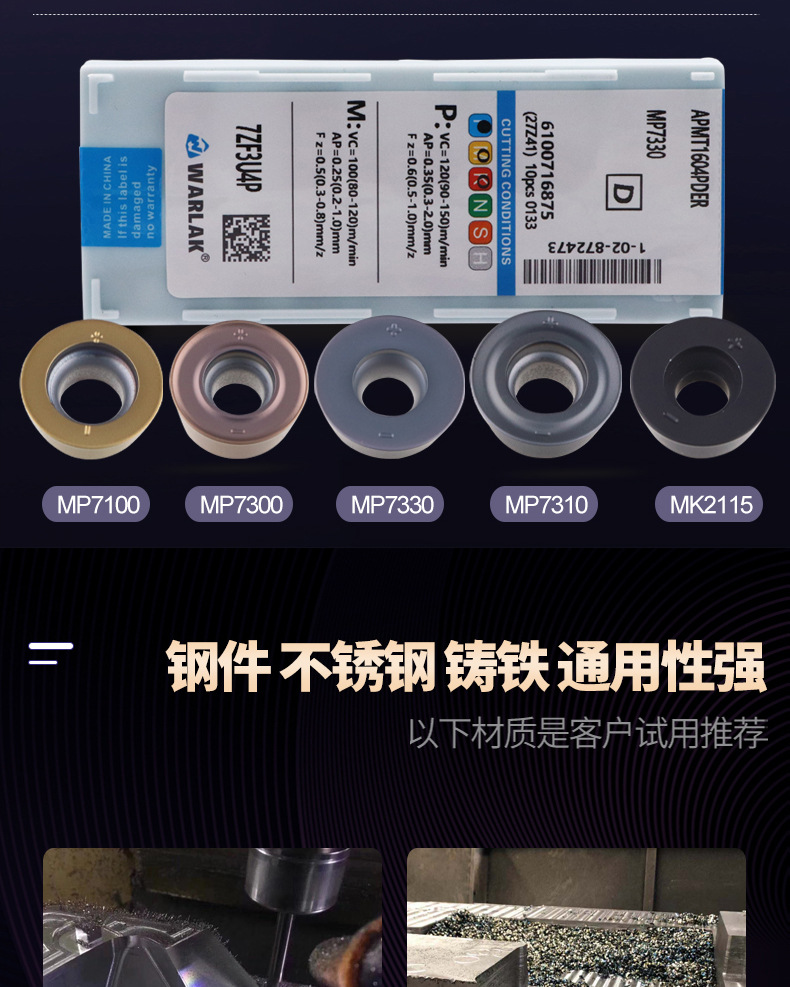 • RPMT10T3MO-Q MP7100 강철 부품은 내마모성이 뛰어납니다.◆R5 두꺼운 조각 홈 스타일 HRC42°다음