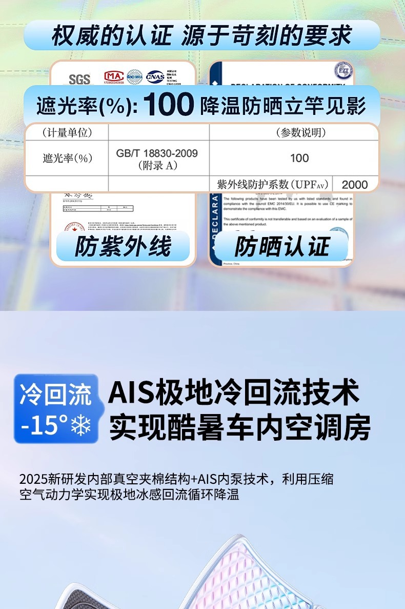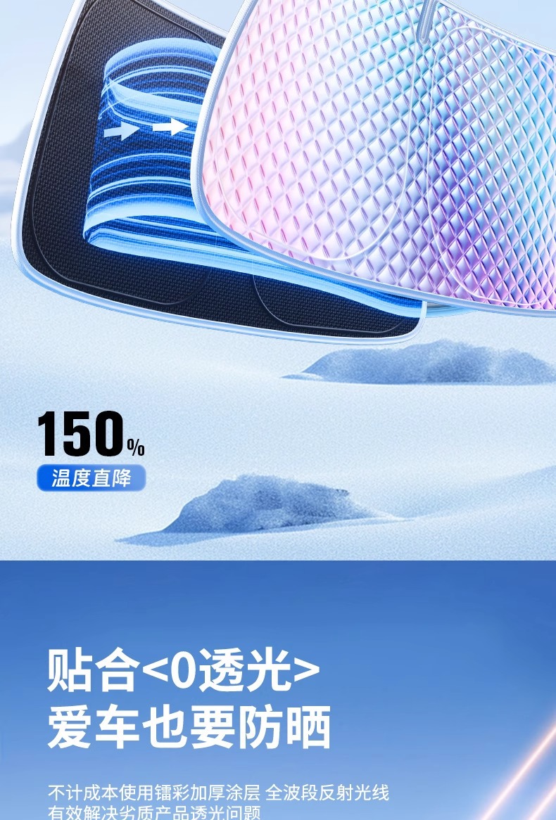 • 이 품목은 측면 차단이 필요합니다. [차양 + 차량 측면 전체 차단] 비닐 얼음 결정 냉동 + 다이아몬드 레이저 자외선 차단 ★ 환경 친화적인 원단