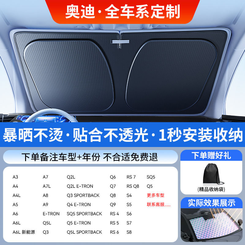 • [아우디 전용] 이중 면 단열 검정색 접착제 얼음 결정 냉동 및 다이아몬드 레이저 자외선 차단 ◆ 무료 맞춤형 보관 가방