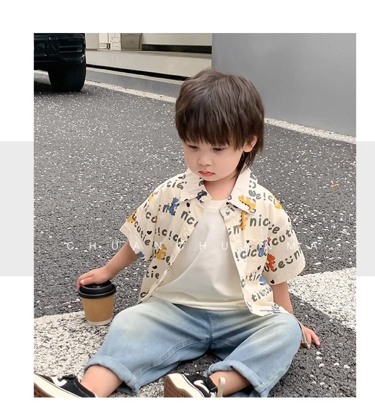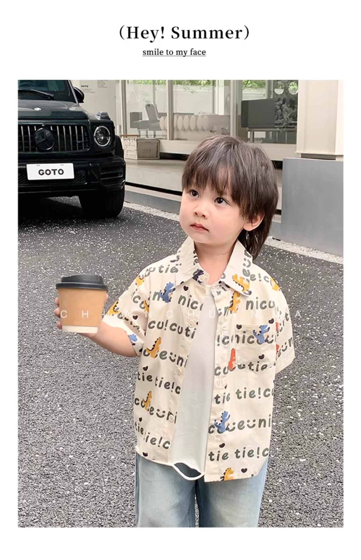 2025 여름 아동용 비치 스타일 얇은 탑, 멋진 스트리트 루즈 셔츠, 남아용 꽃무늬 셔츠, 반팔 트렌디스토어 가기