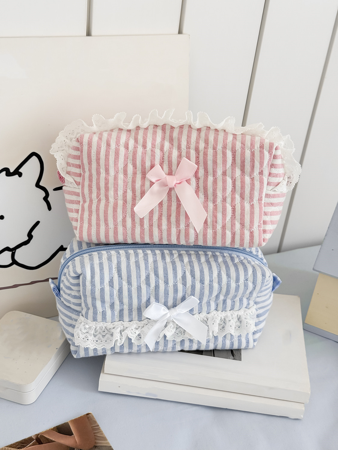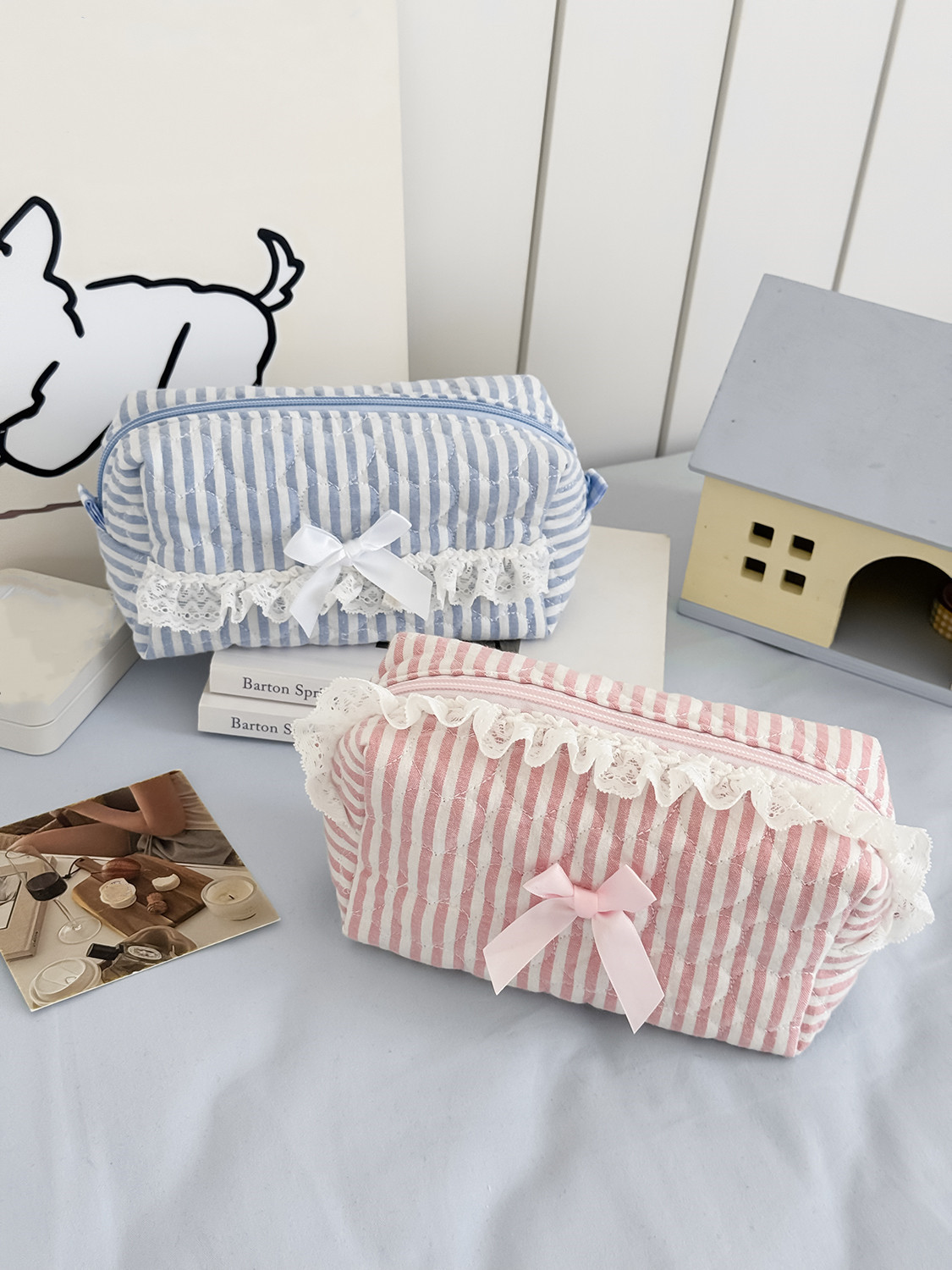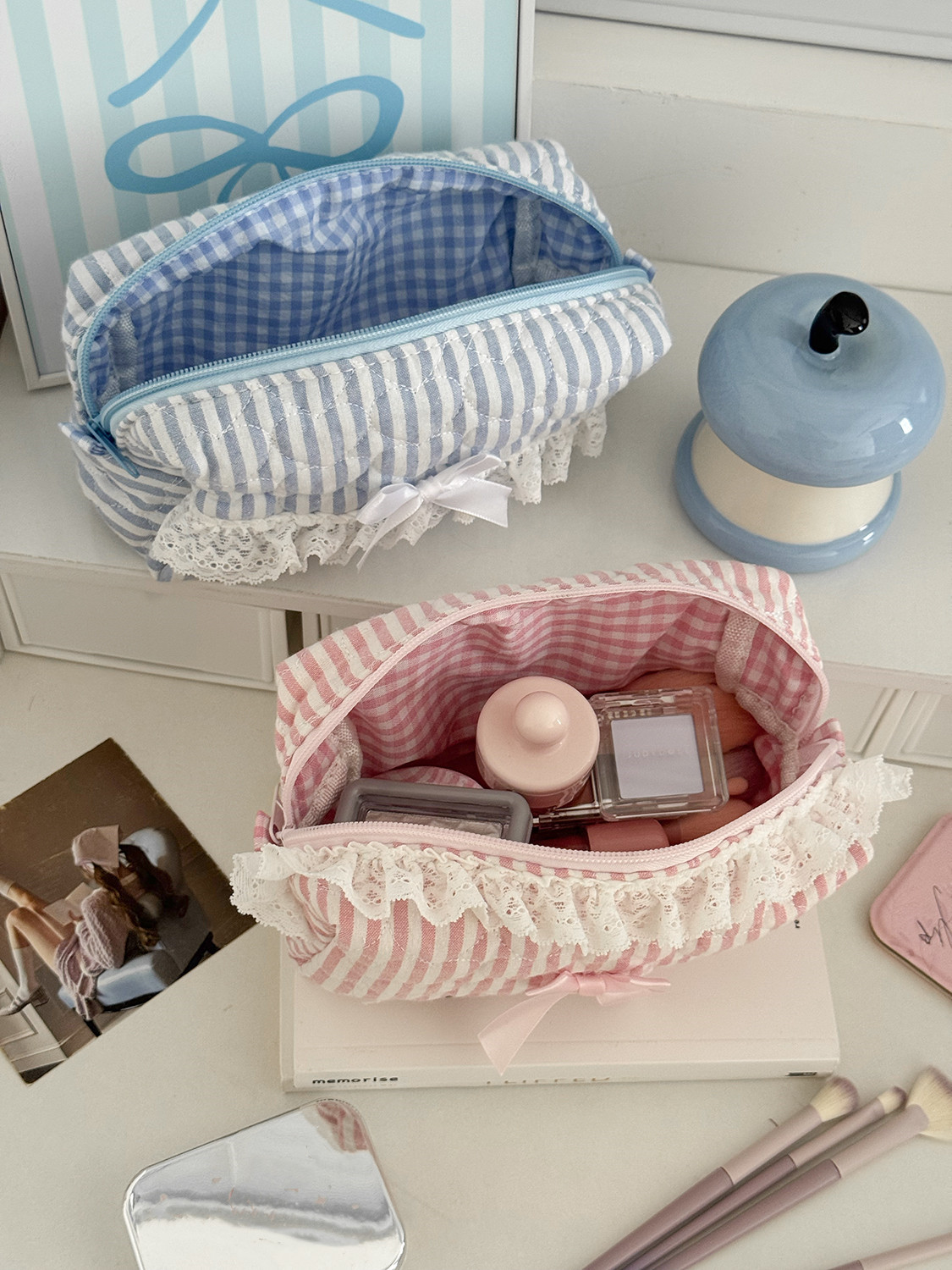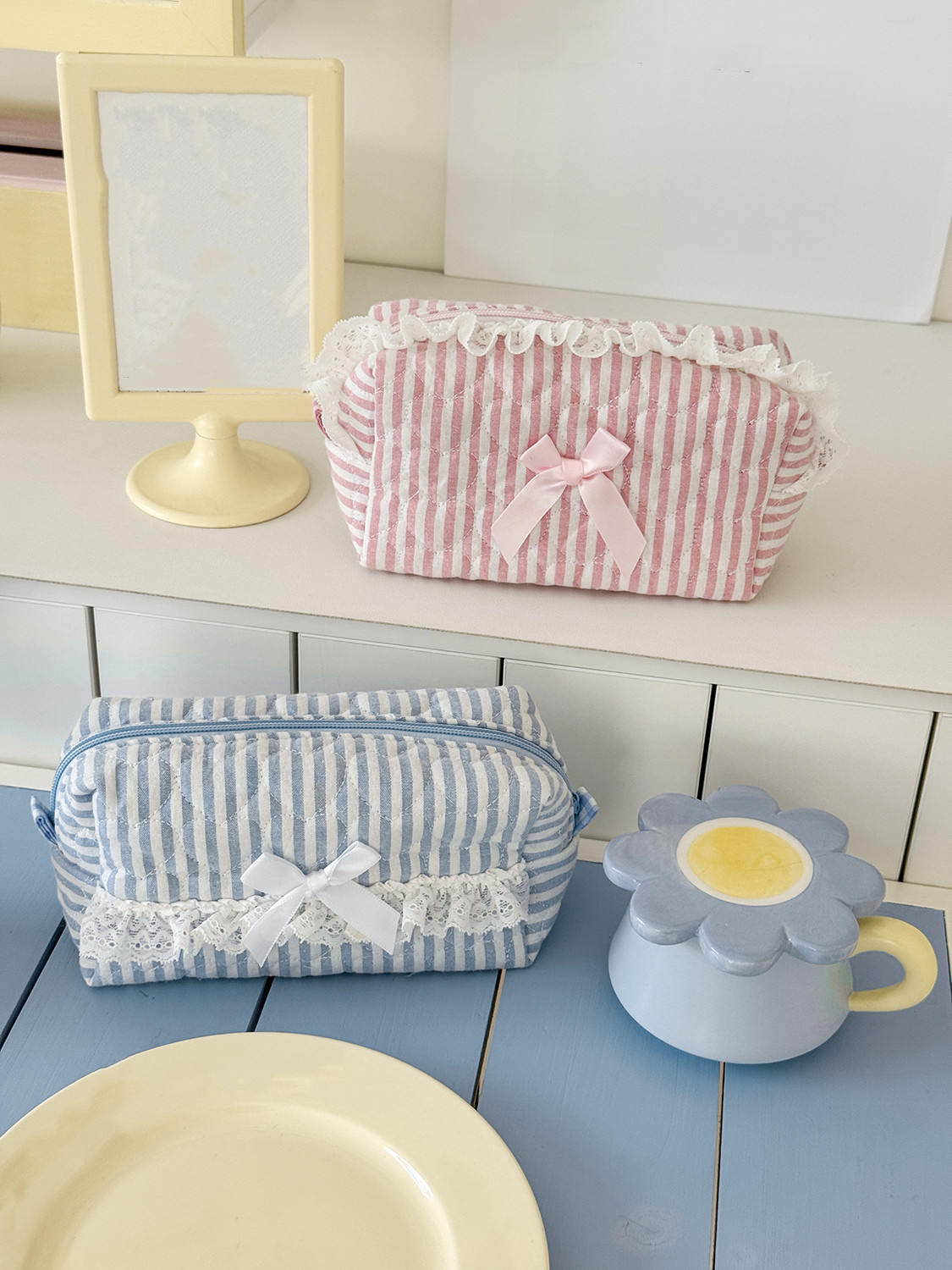 条形花边蕾丝爱心化妆包清新甜美外出便携手拿包少女化妆品收纳包