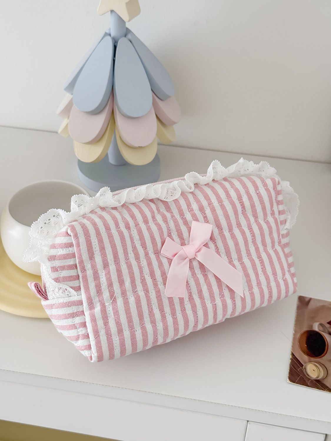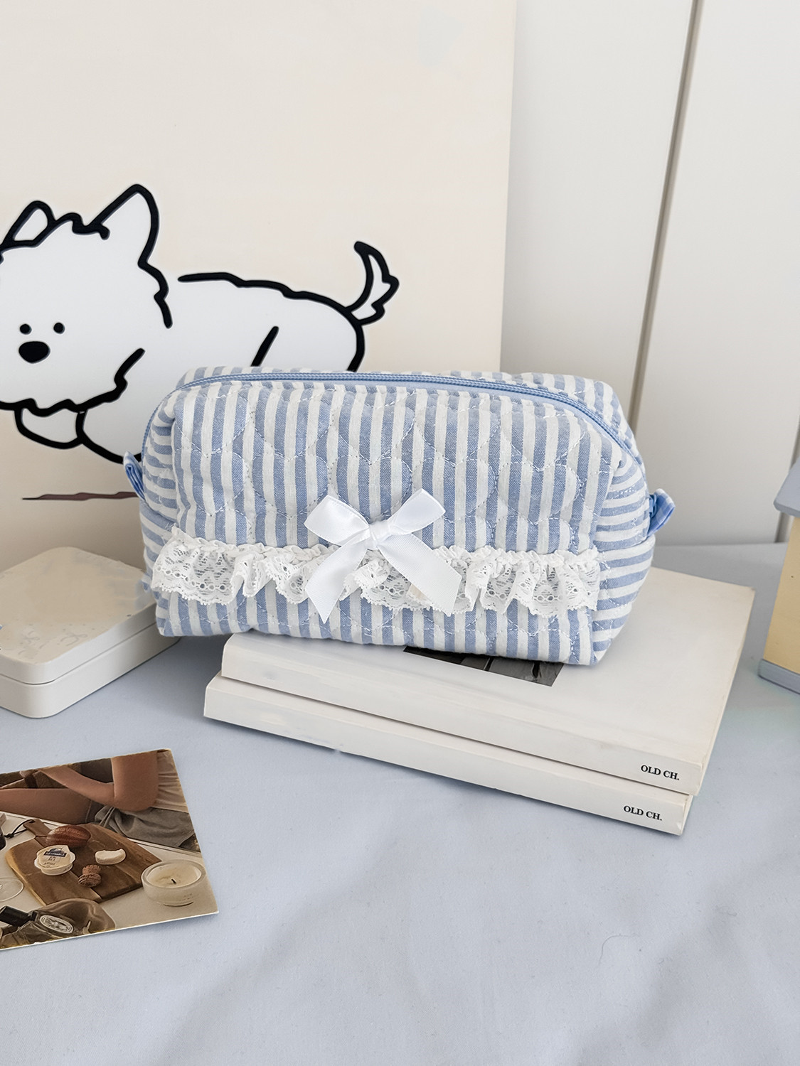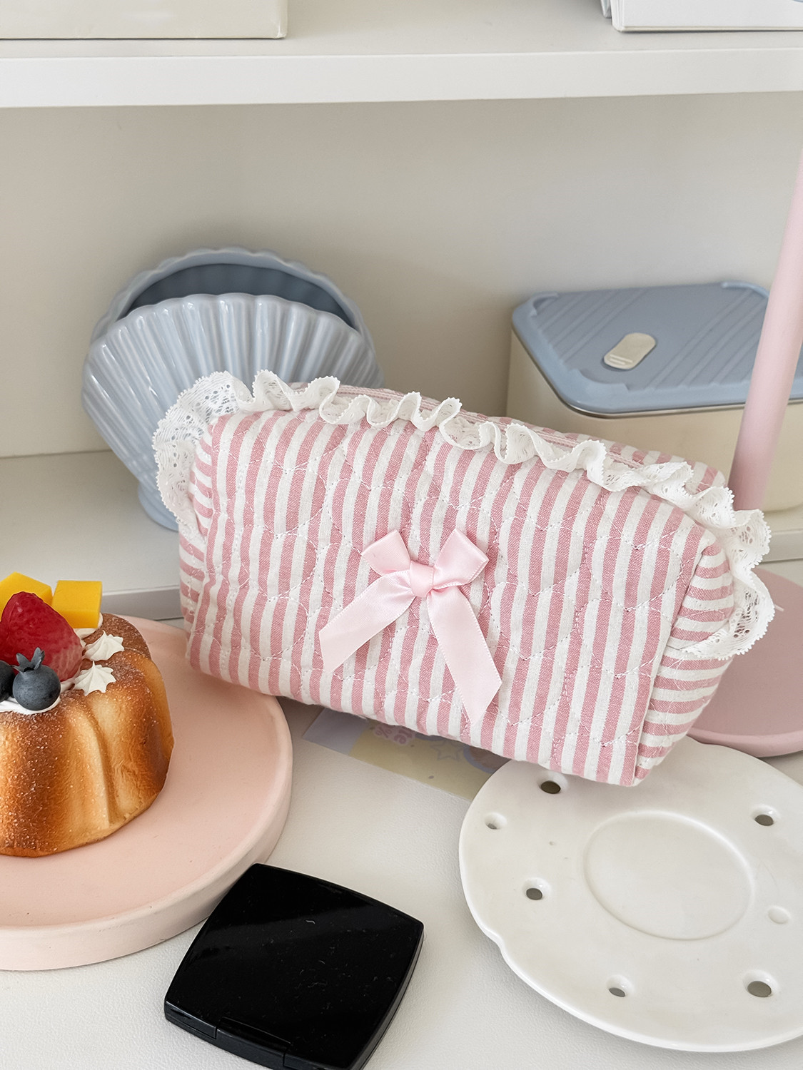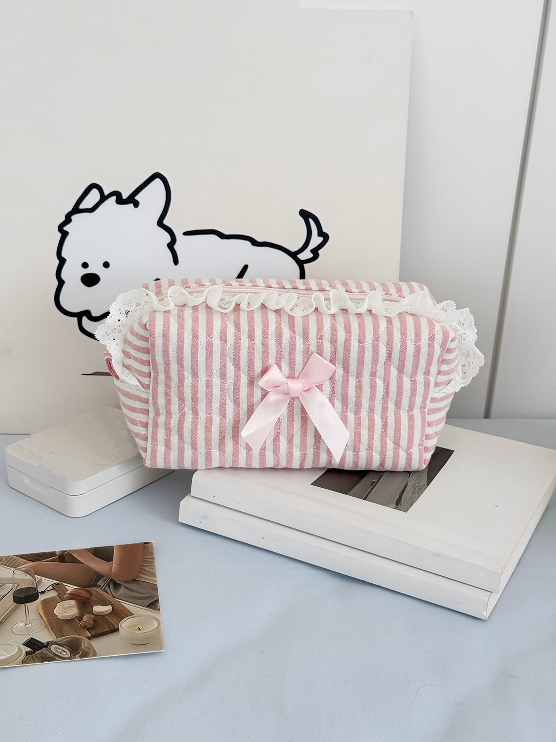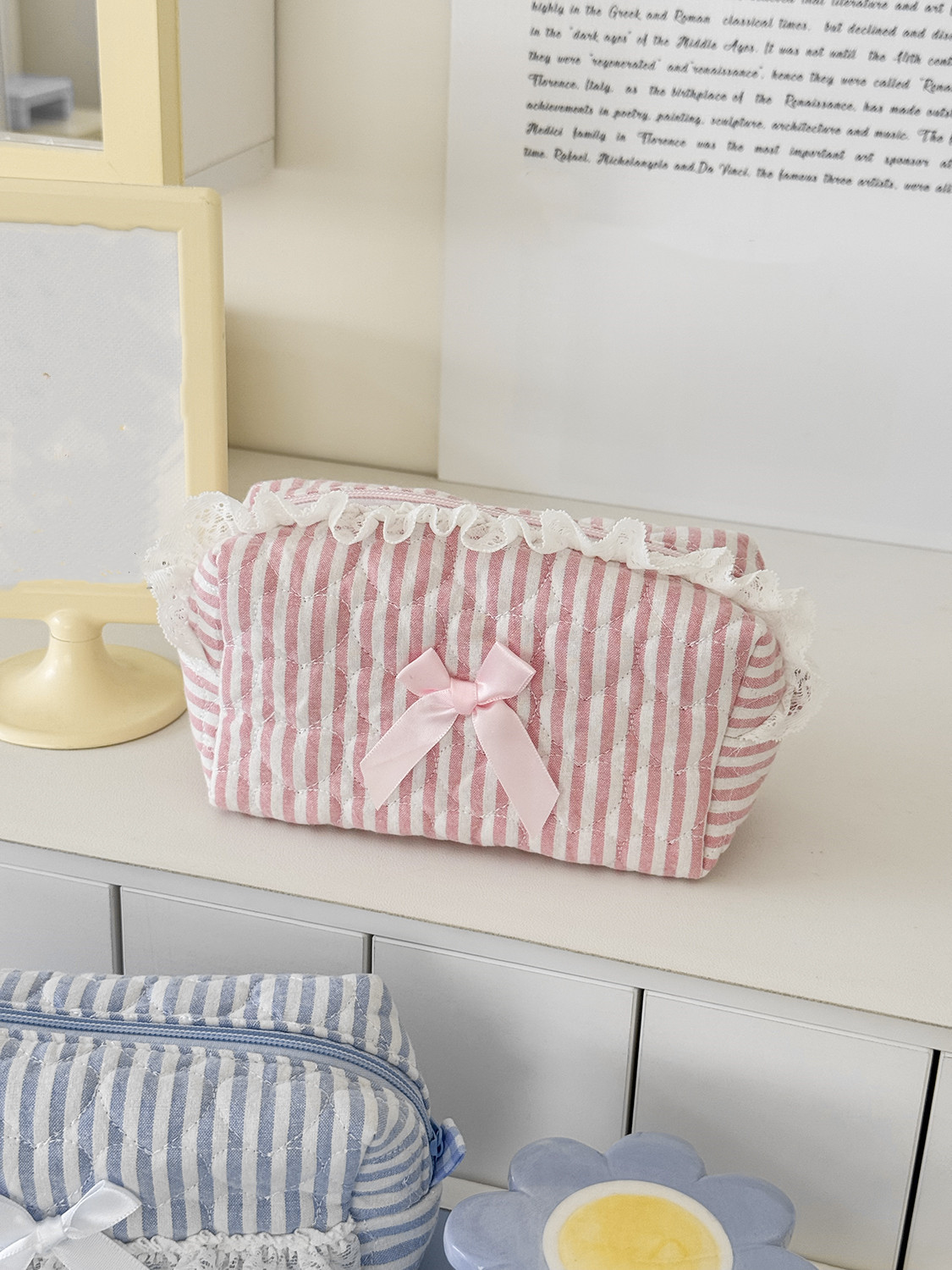 条形花边蕾丝爱心化妆包清新甜美外出便携手拿包少女化妆品收纳包