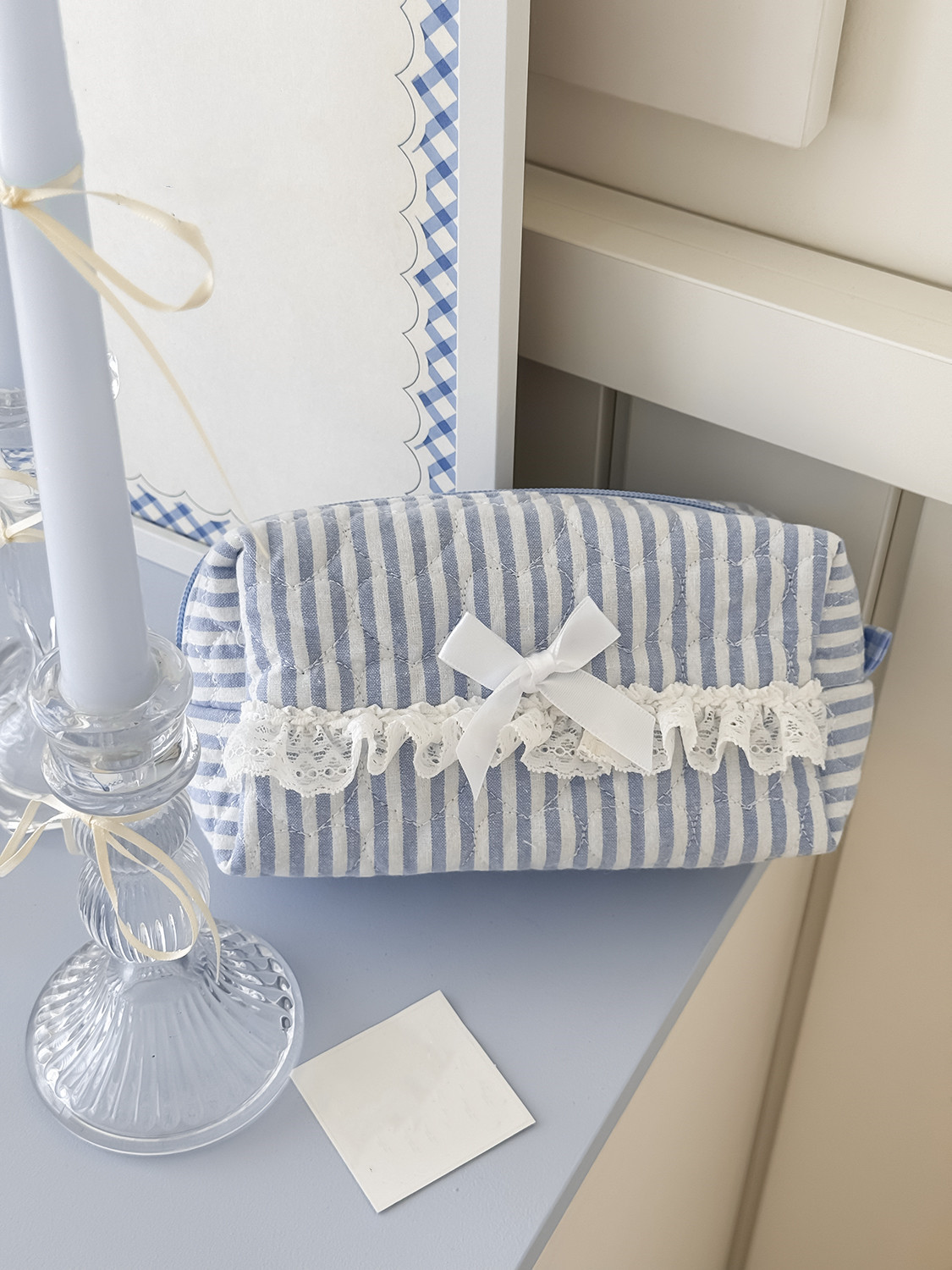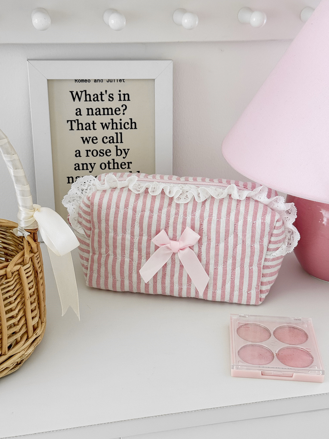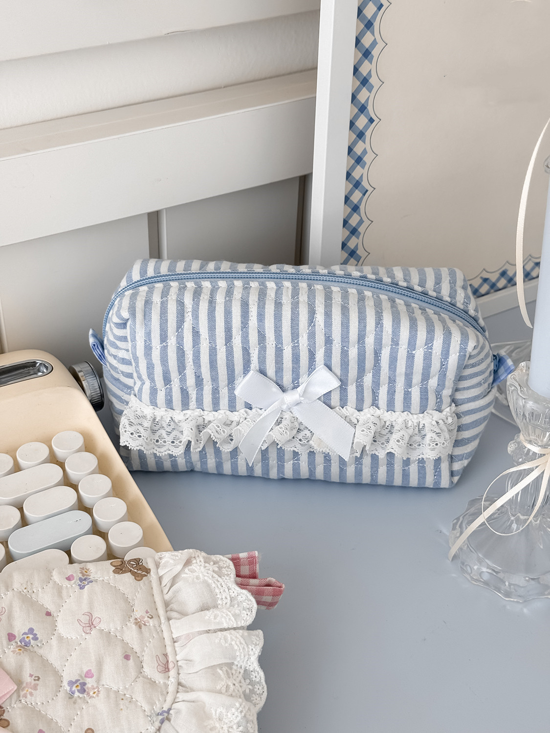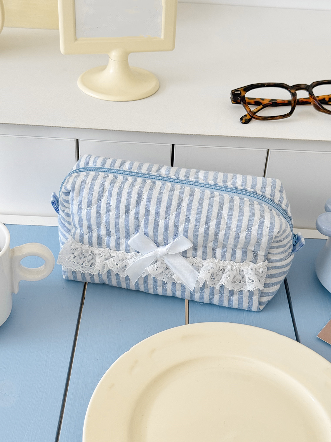条形花边蕾丝爱心化妆包清新甜美外出便携手拿包少女化妆品收纳包