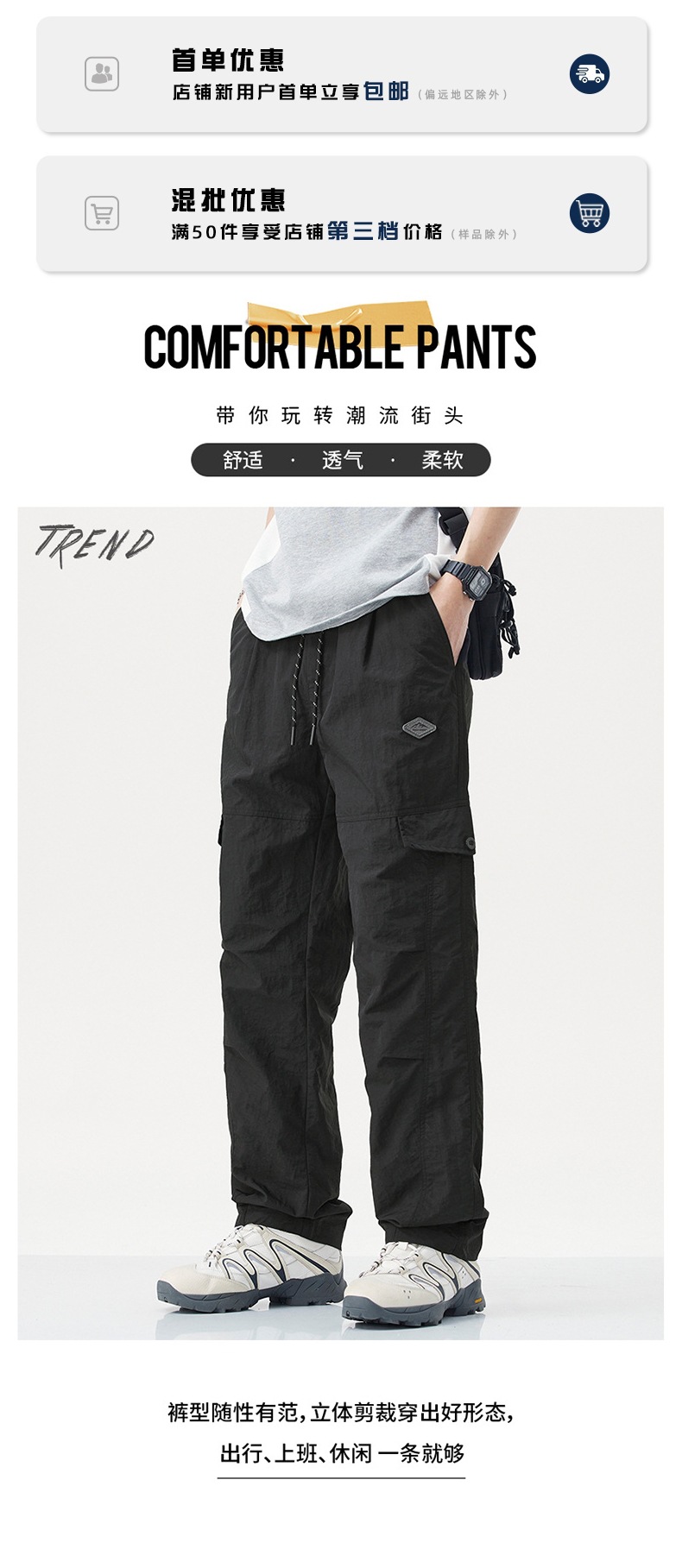 국경을 넘나드는 Mingge | 2025년 신상 여름 아이스 실크 속건성 남성용 아메리칸 패션 브랜드 루즈 스트레이트 작업복스토어 가기
