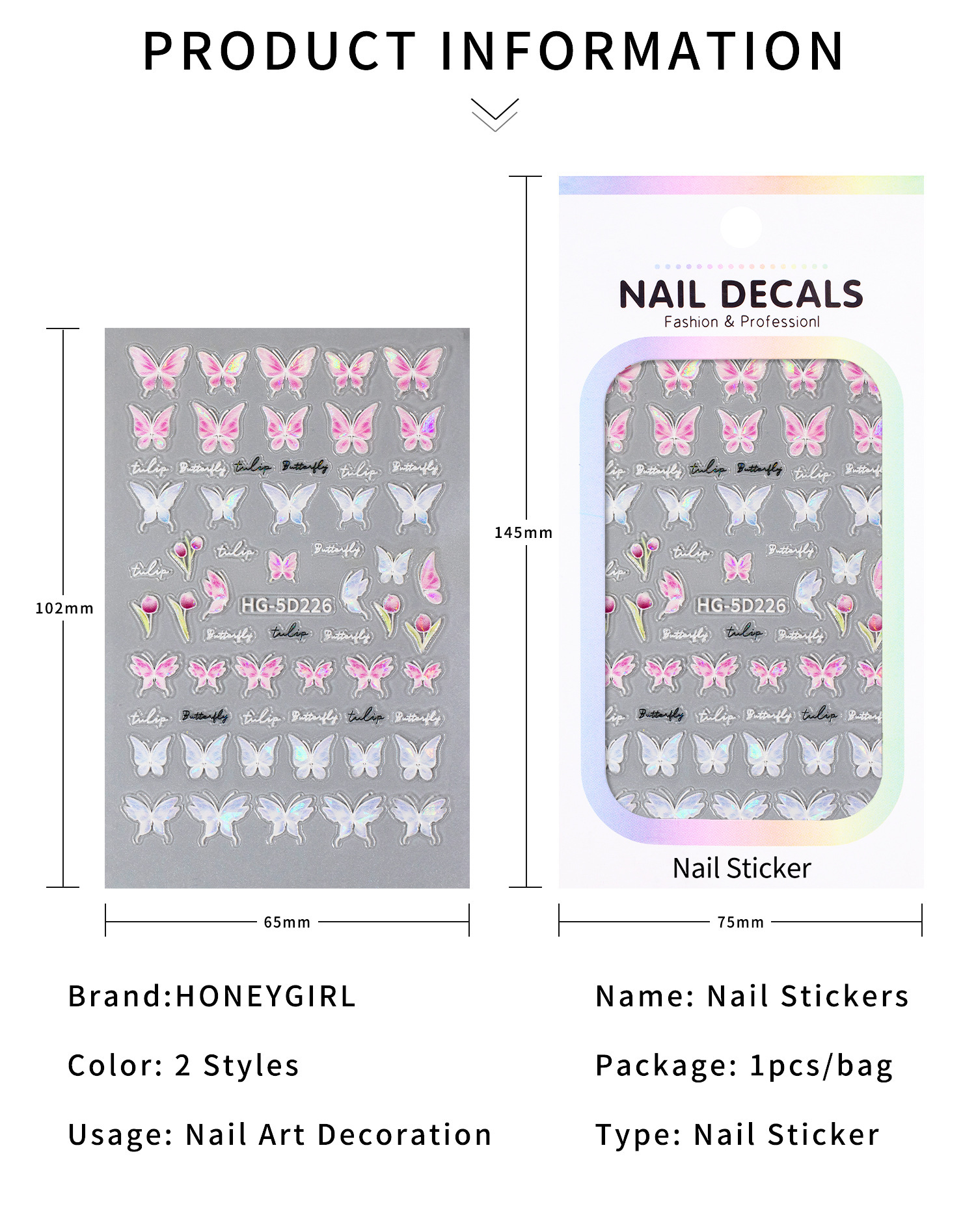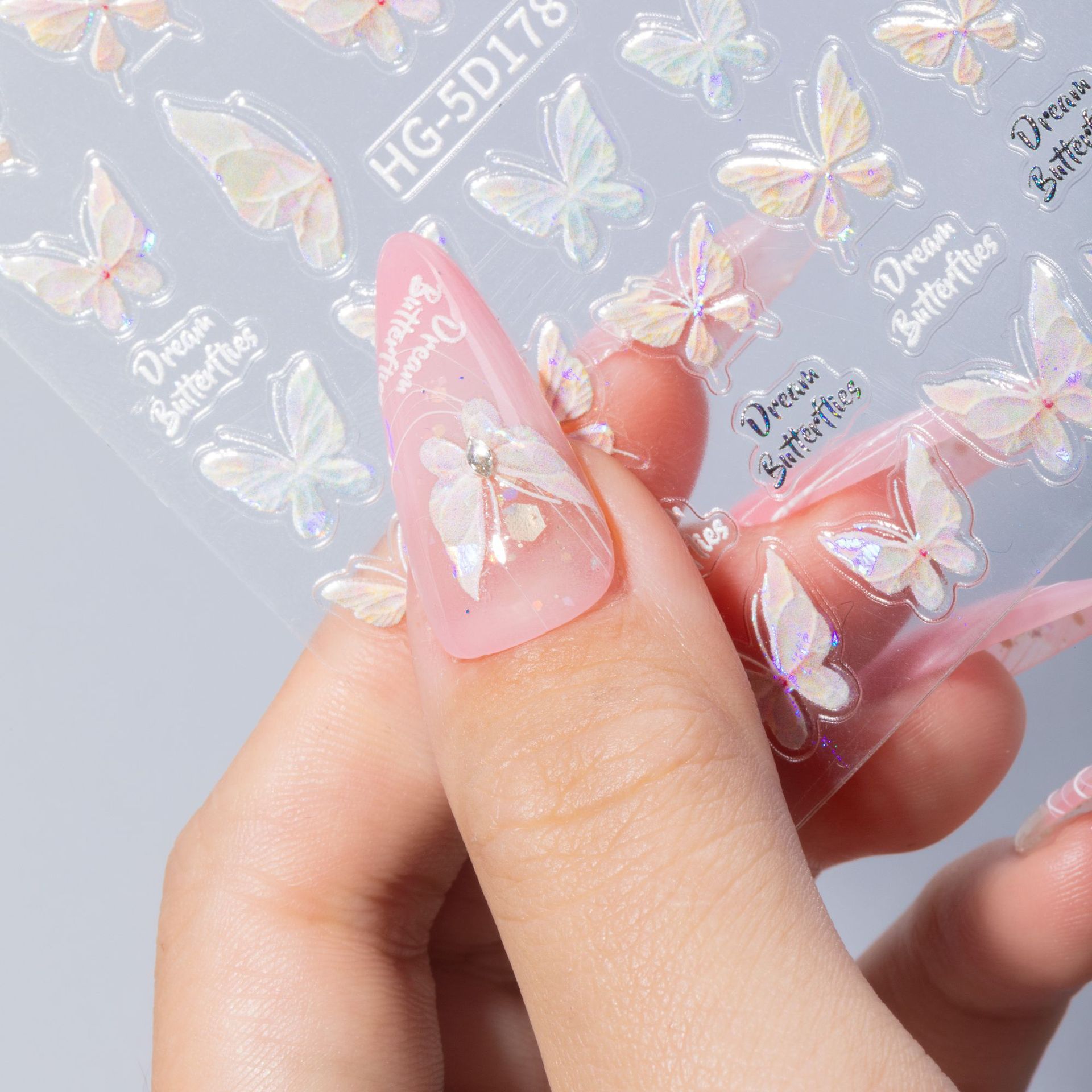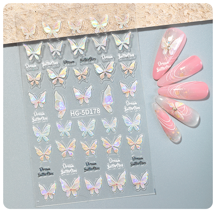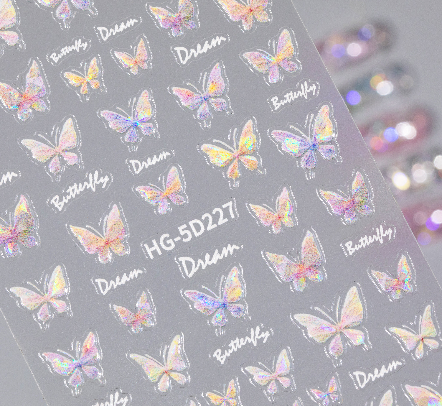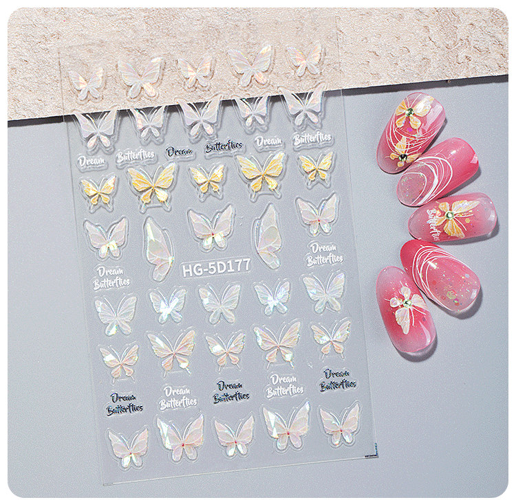 오로라 양각 나비 네일 스티커 도매 5D 입체 작은 신선한 나비 네일 아트 스티커 쥬얼리 HG 스타일
