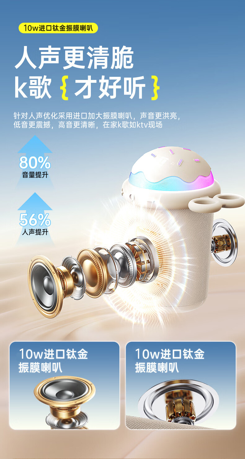 K98 블루투스 오디오 아이스크림 어린이 가족 마이크 오디오 통합 마이크 노래 서브우퍼 사용자 정의스토어 가기