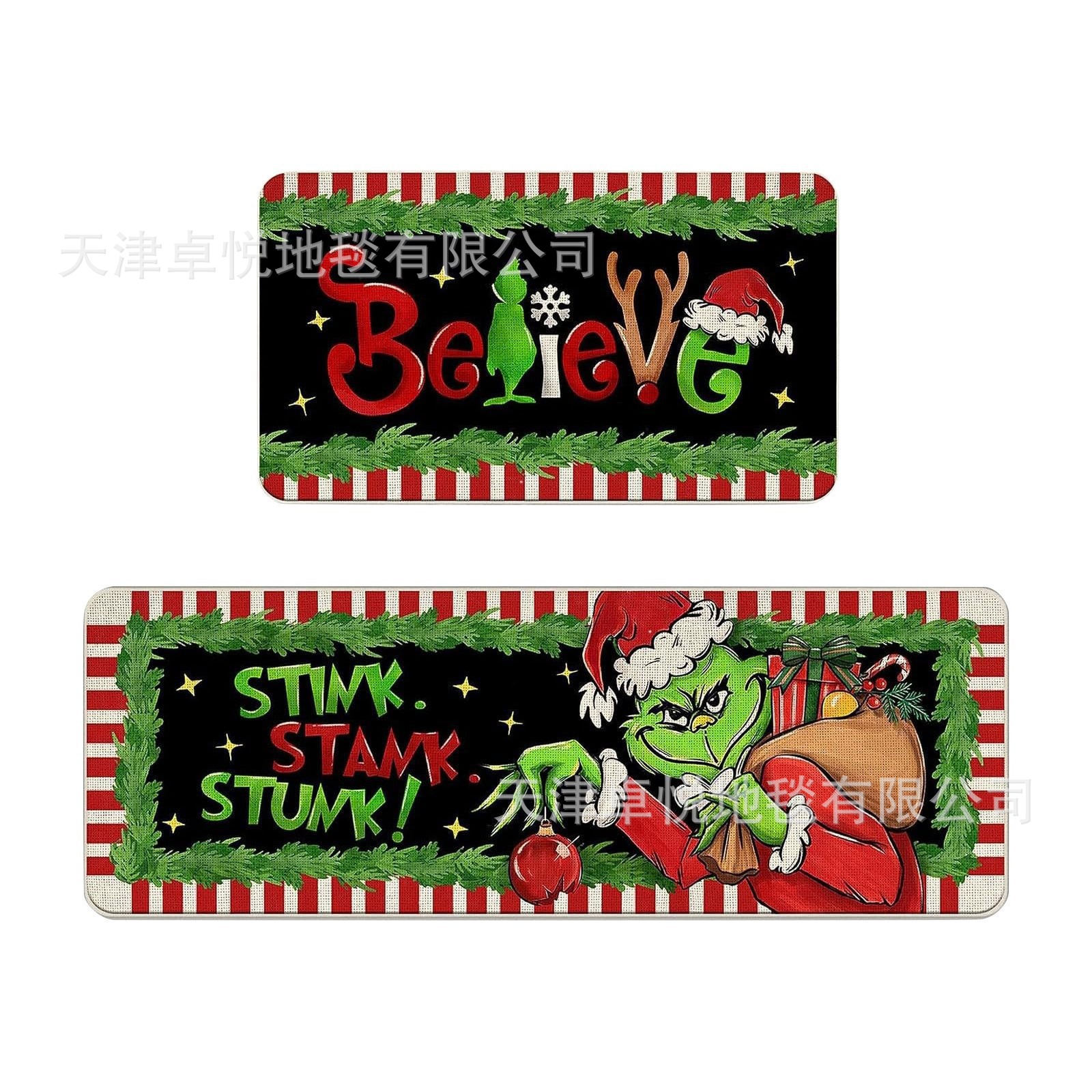 크로스보더 크리스마스 그린치 바닥 매트 주방 흡수성 물 및 기름 흡수성 바닥 매트 휴일 장식 카펫 입구 문 매트스토어 가기