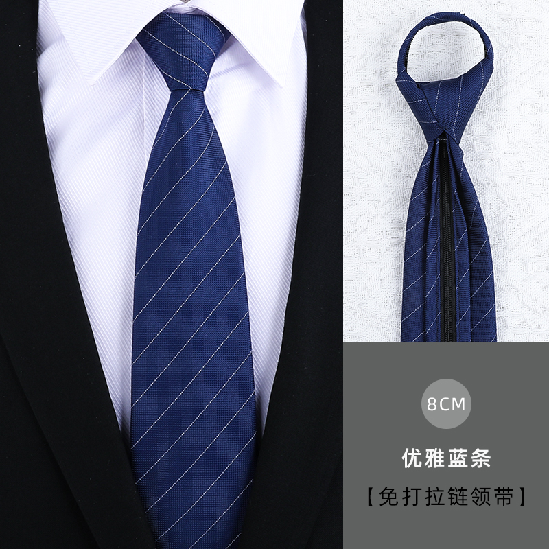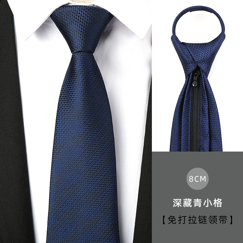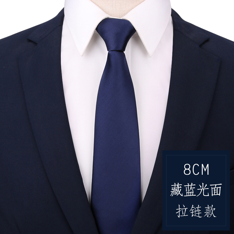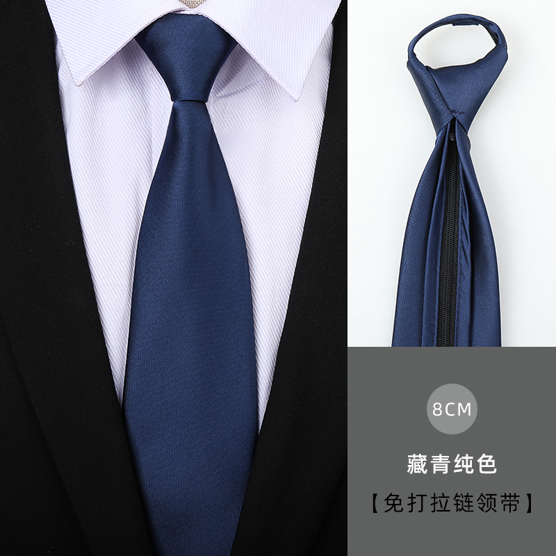 남성용 네이비 블루 광택 지퍼 넥타이, 정장 비즈니스 신랑 결혼식 8cm 여성용 간편한 게으른 넥타이스토어 가기