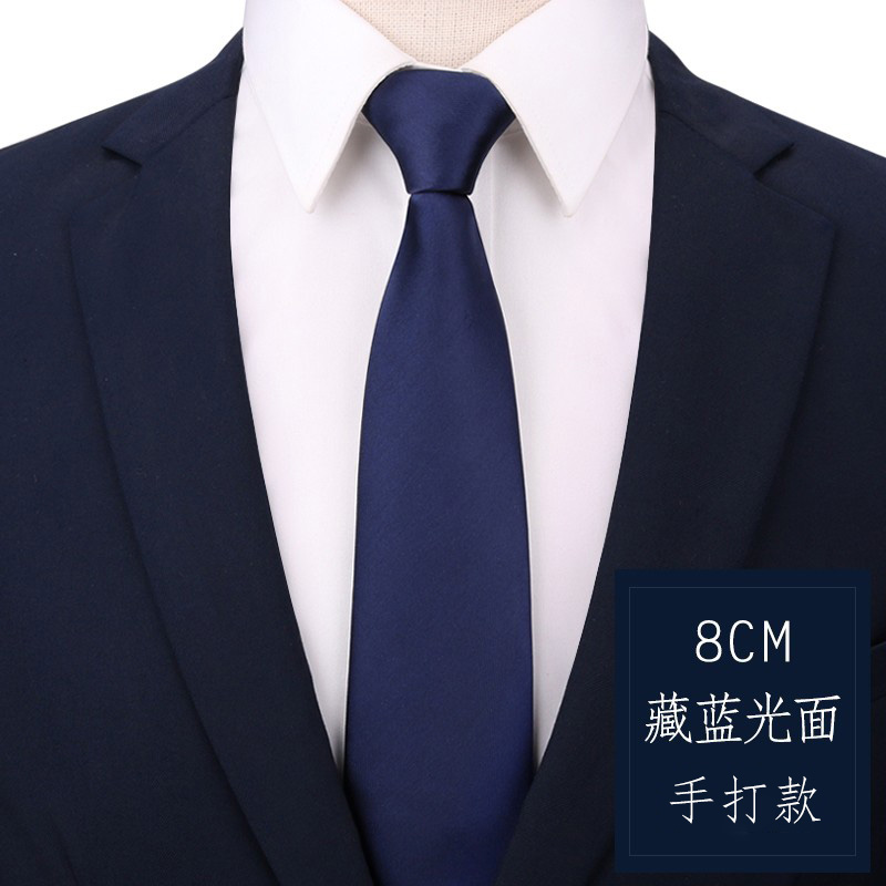 • 8CM 네이비 솔리드 컬러 핸드메이드
