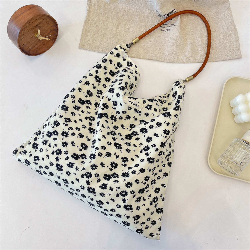 5642 한국 틈새 복고풍 꽃 대비 색상 예술적 캔버스 가방 달콤하고 다재다능한 학생 어깨 크로스 바디 백스토어 가기