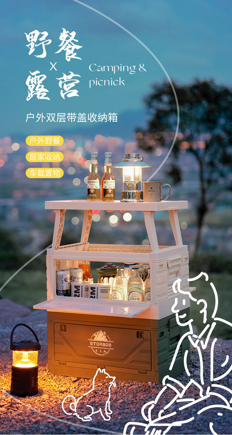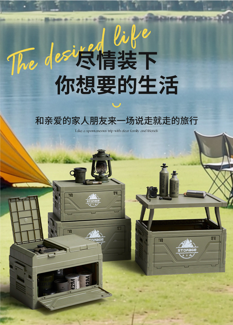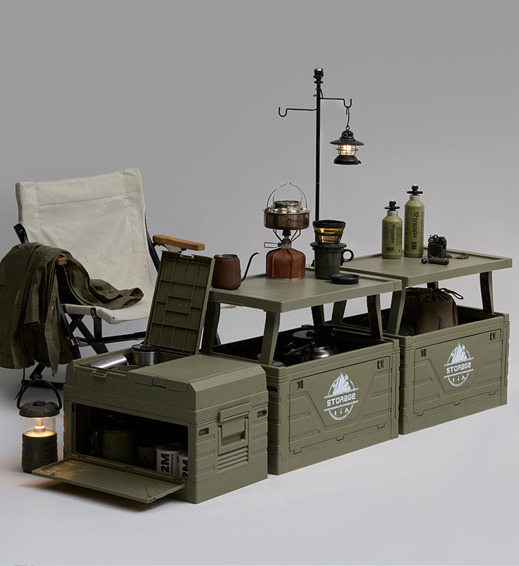 야외 캠핑 접이식 상자 테이블이있는 자동차 트렁크 캠핑 피크닉 보관 상자 산업 스타일 낚시 장비 상자