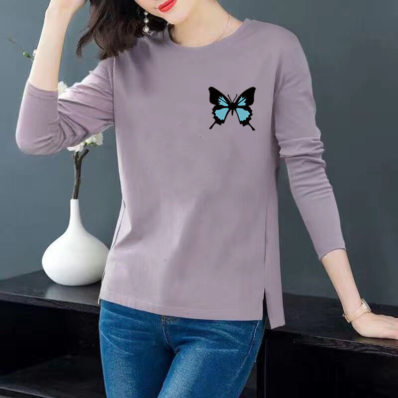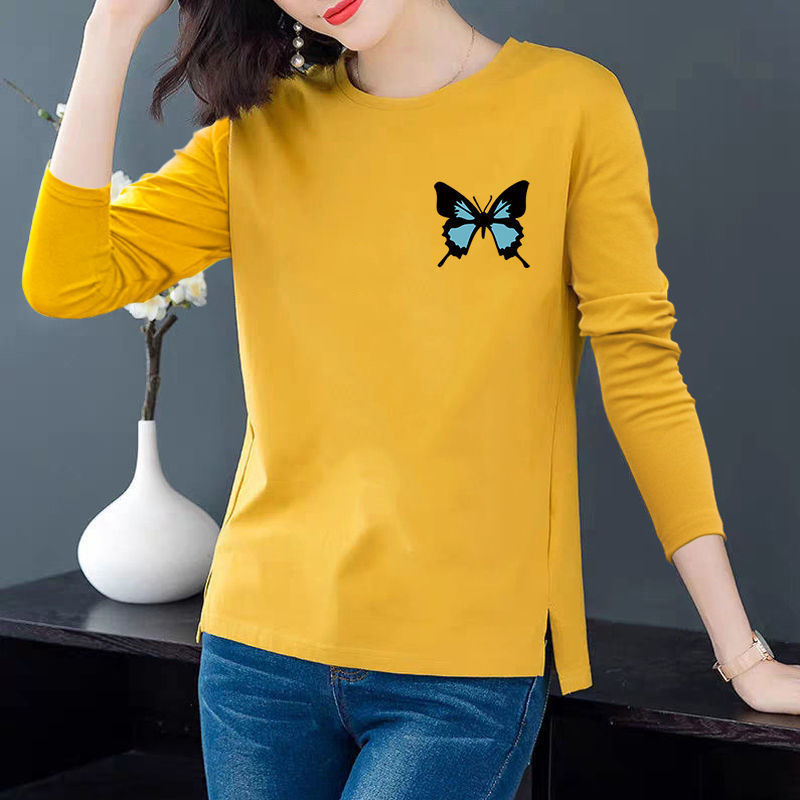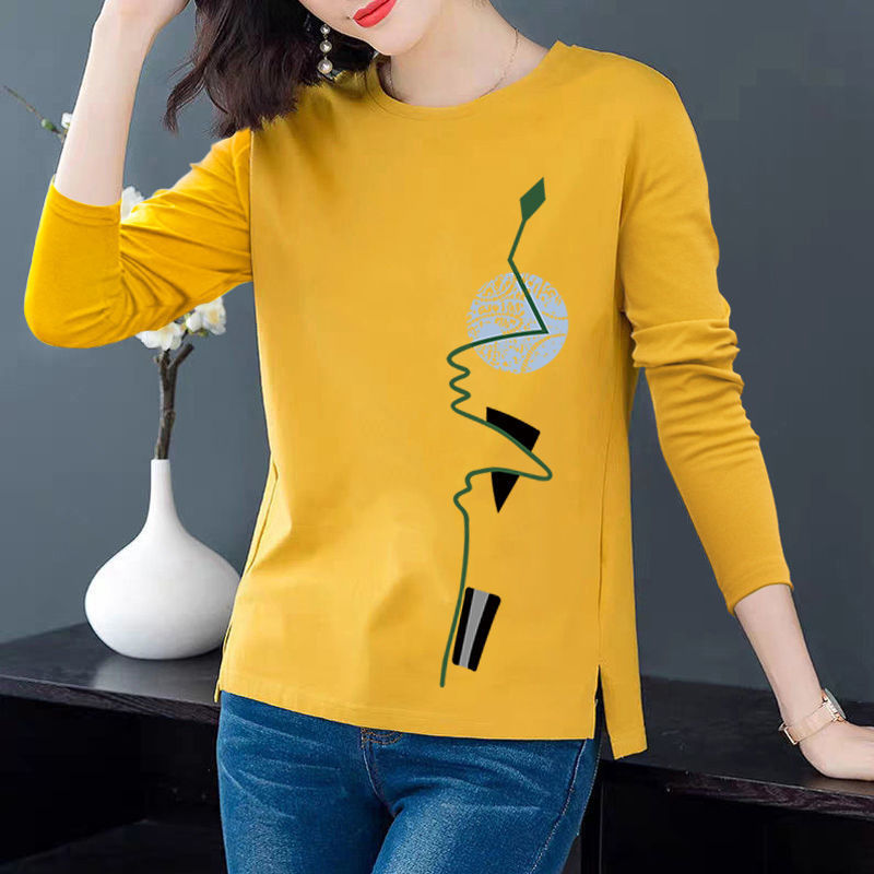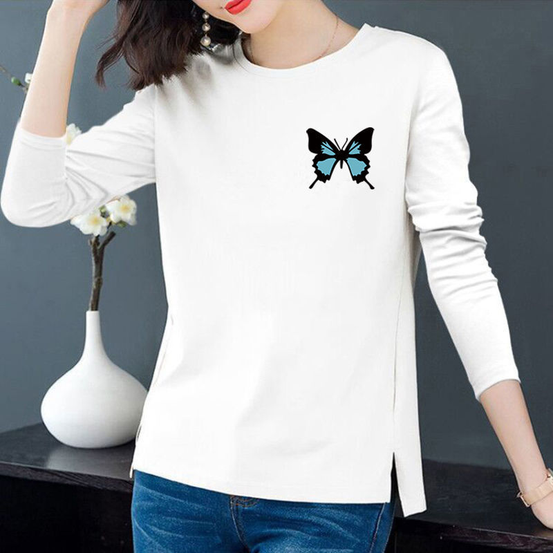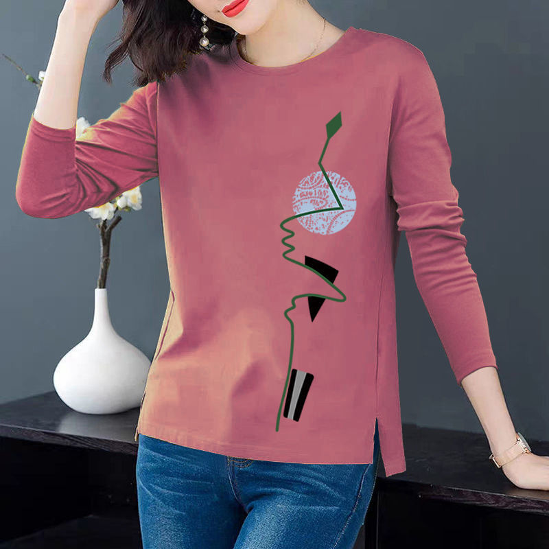긴팔 셔츠 여성 루즈 아우터 봄, 가을 2025 신상 바닥 슬릿 탑 한국 스타일 티셔츠 트렌디스토어 가기