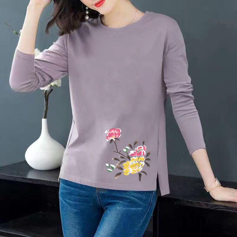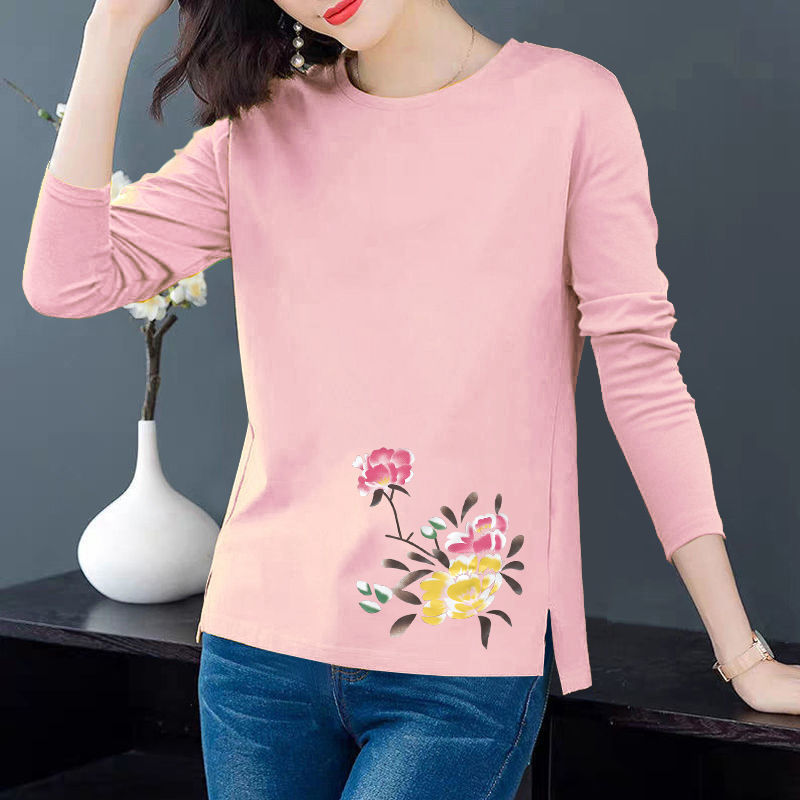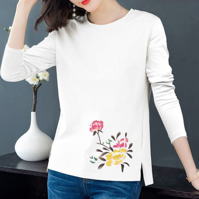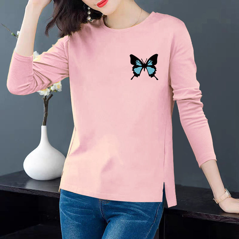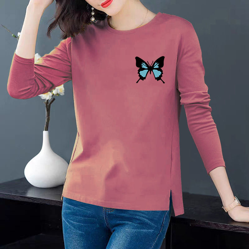 긴팔 셔츠 여성 루즈 아우터 봄, 가을 2025 신상 바닥 슬릿 탑 한국 스타일 티셔츠 트렌디스토어 가기