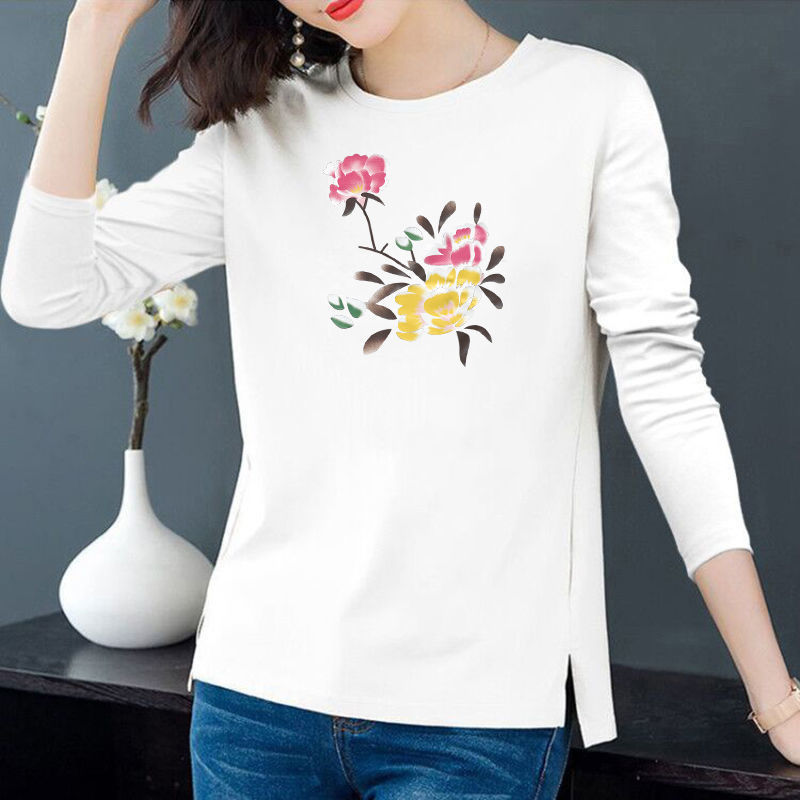 • 흰색 슬릿 긴 소매 중앙에 모란 꽃