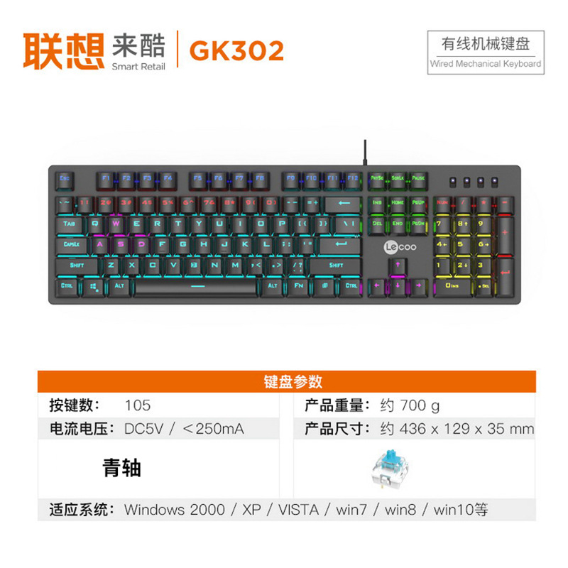 Laiku GK302 녹색 축 기계식 키보드 usb 유선 20 게임 비즈니스 도매에 적합한 발광 모드스토어 가기