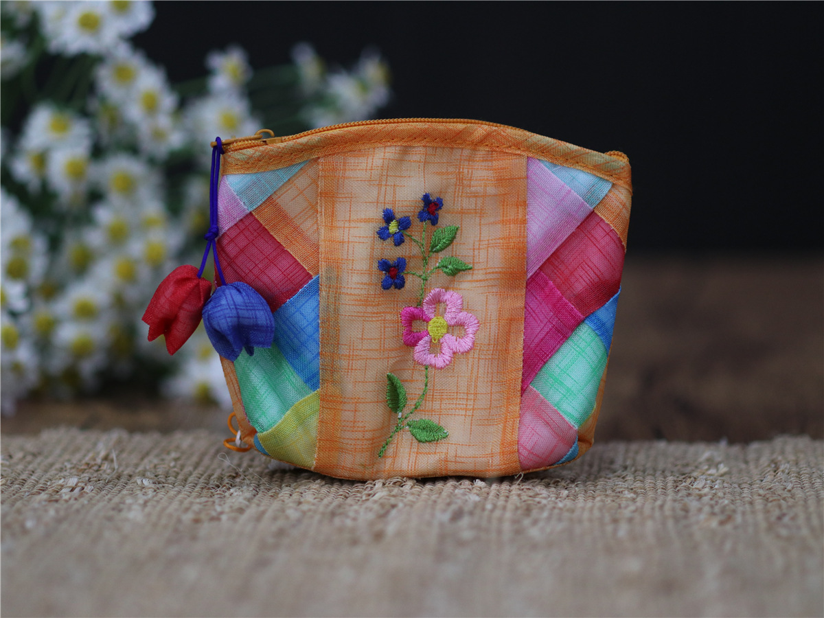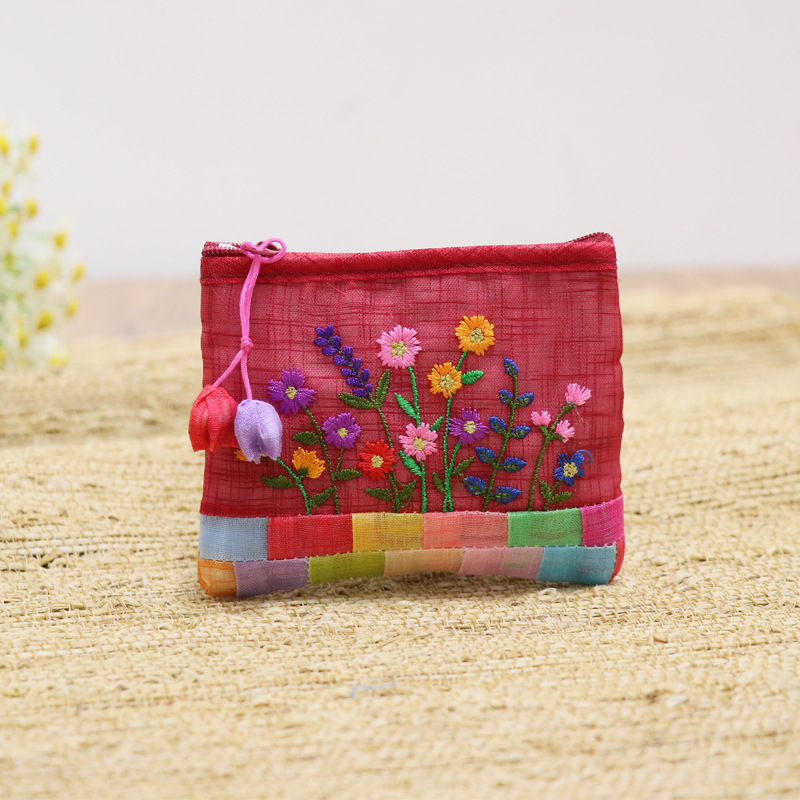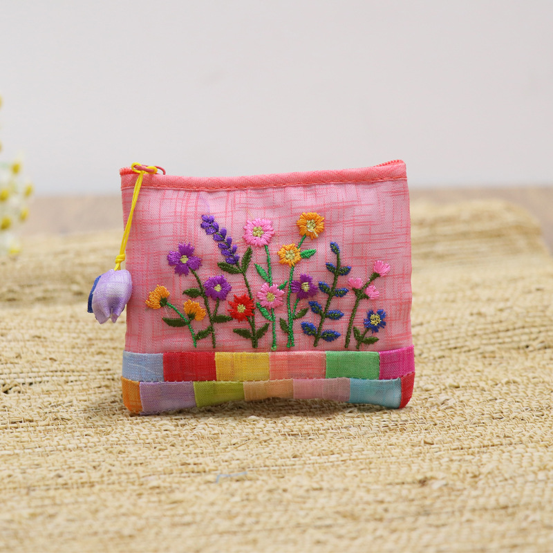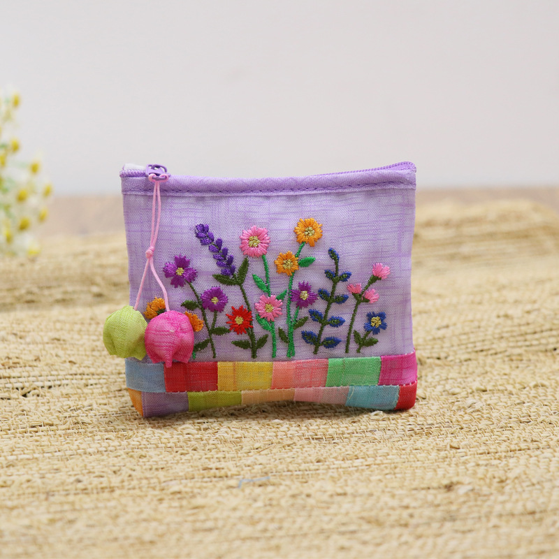 연변 민속 특징 한국식 거즈 자수 작은 가방 휴대용 한국어 작은 동전 지갑 휴대용 선물 여행