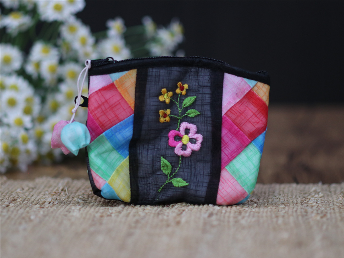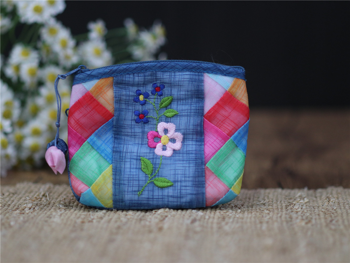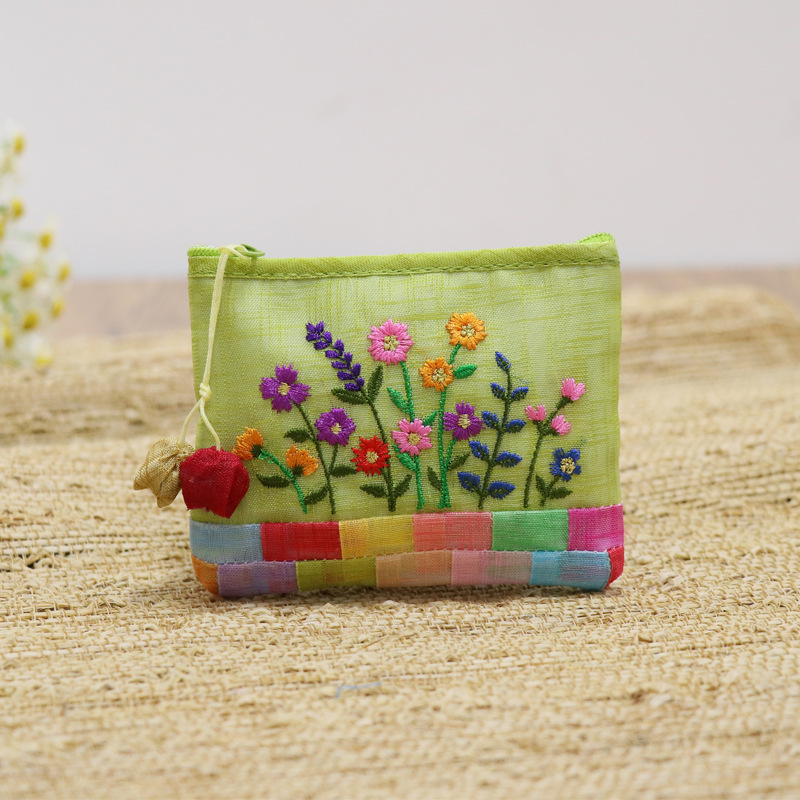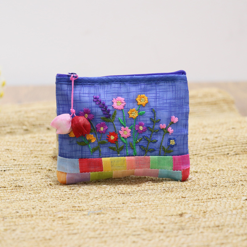 연변 민속 특징 한국식 거즈 자수 작은 가방 휴대용 한국어 작은 동전 지갑 휴대용 선물 여행